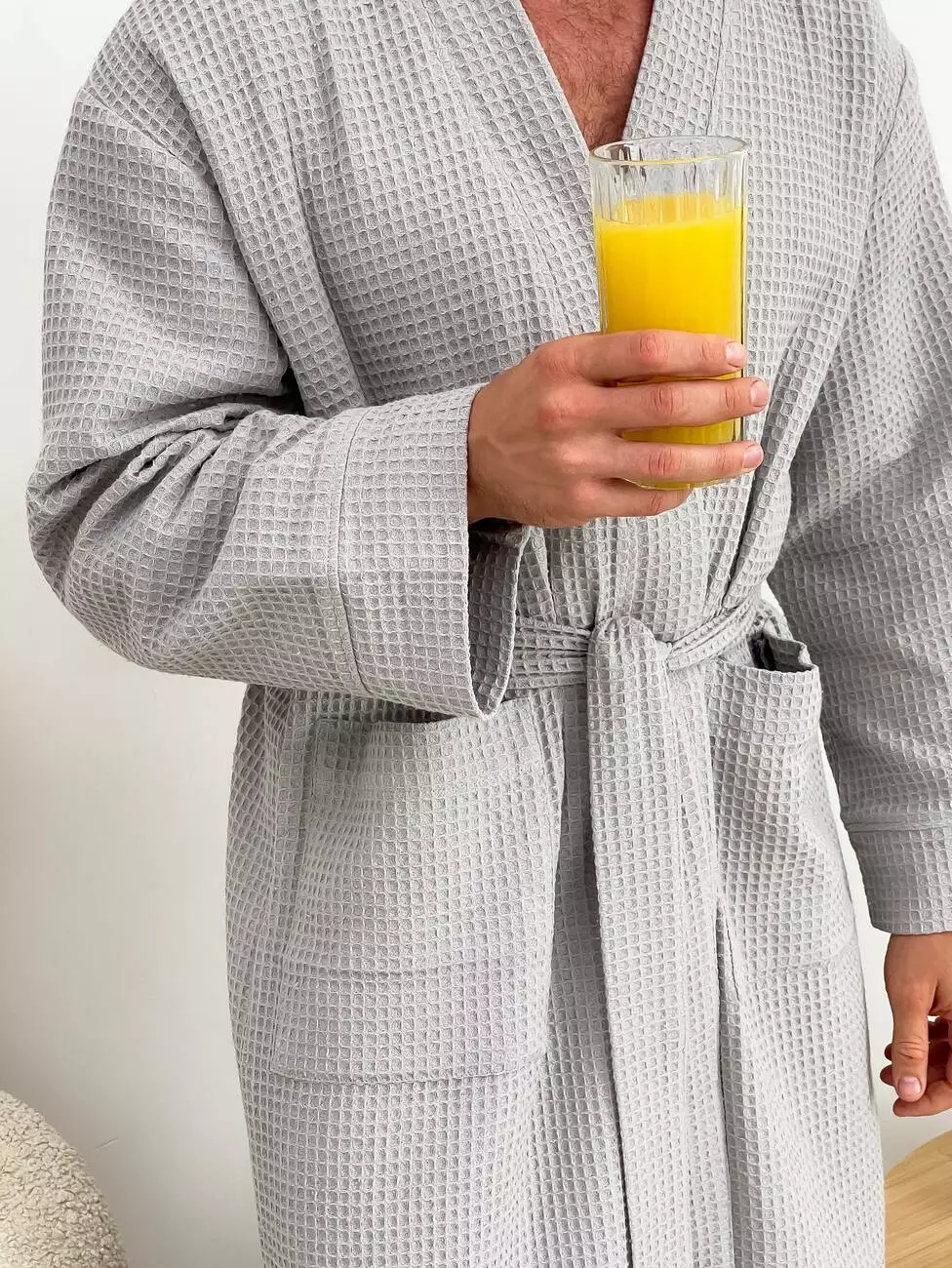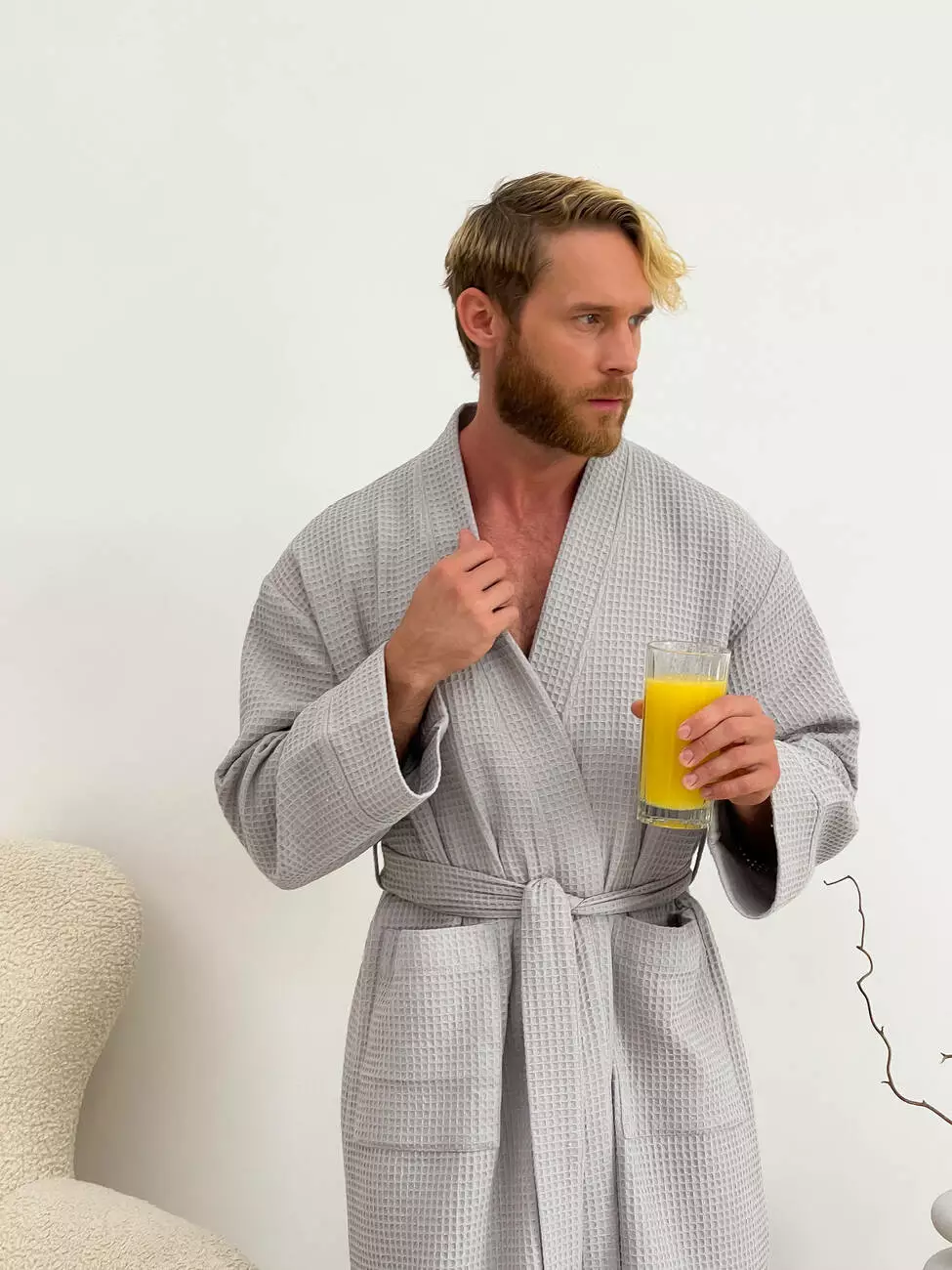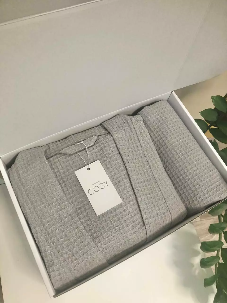 Чоловічий Подарунковий набір COSY халат кімоно з рушником сірий в коробці