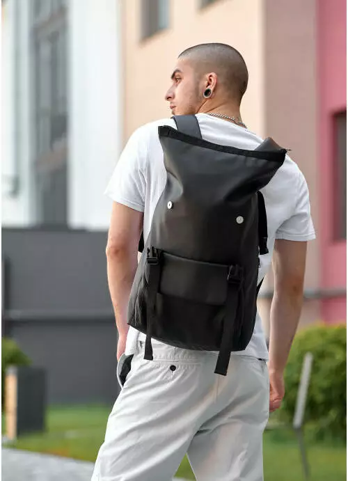 Чоловічий рюкзак ролл Sambag RollTop Milton чорний з клапаном