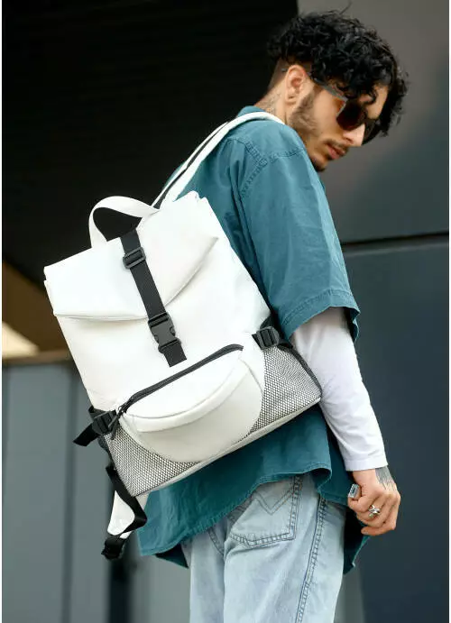 Спереди рюкзака есть два вместительных кармана и один с задней