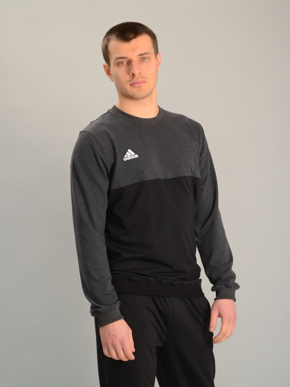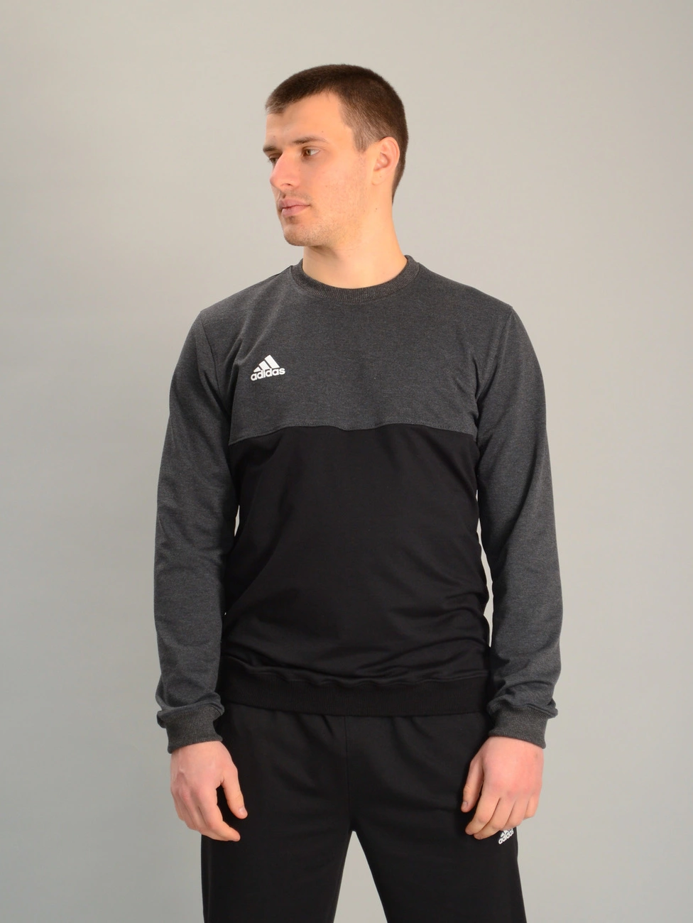 Чоловічий спортивний двоколірний світшот adidas антрацитово-чорний, Ростовка (4 шт)