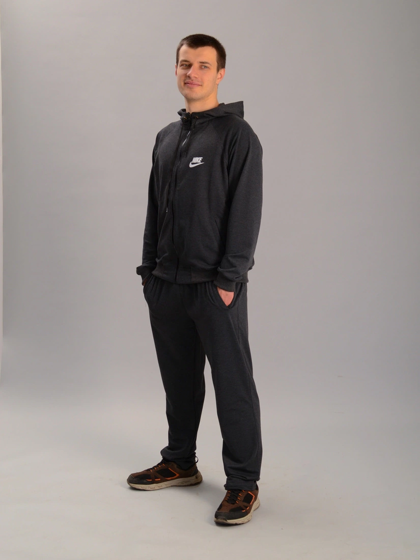 Чоловічий спортивний костюм із кофтою на замку з капюшоном nike антрацитовий (батал), Ростовка (3 шт)
