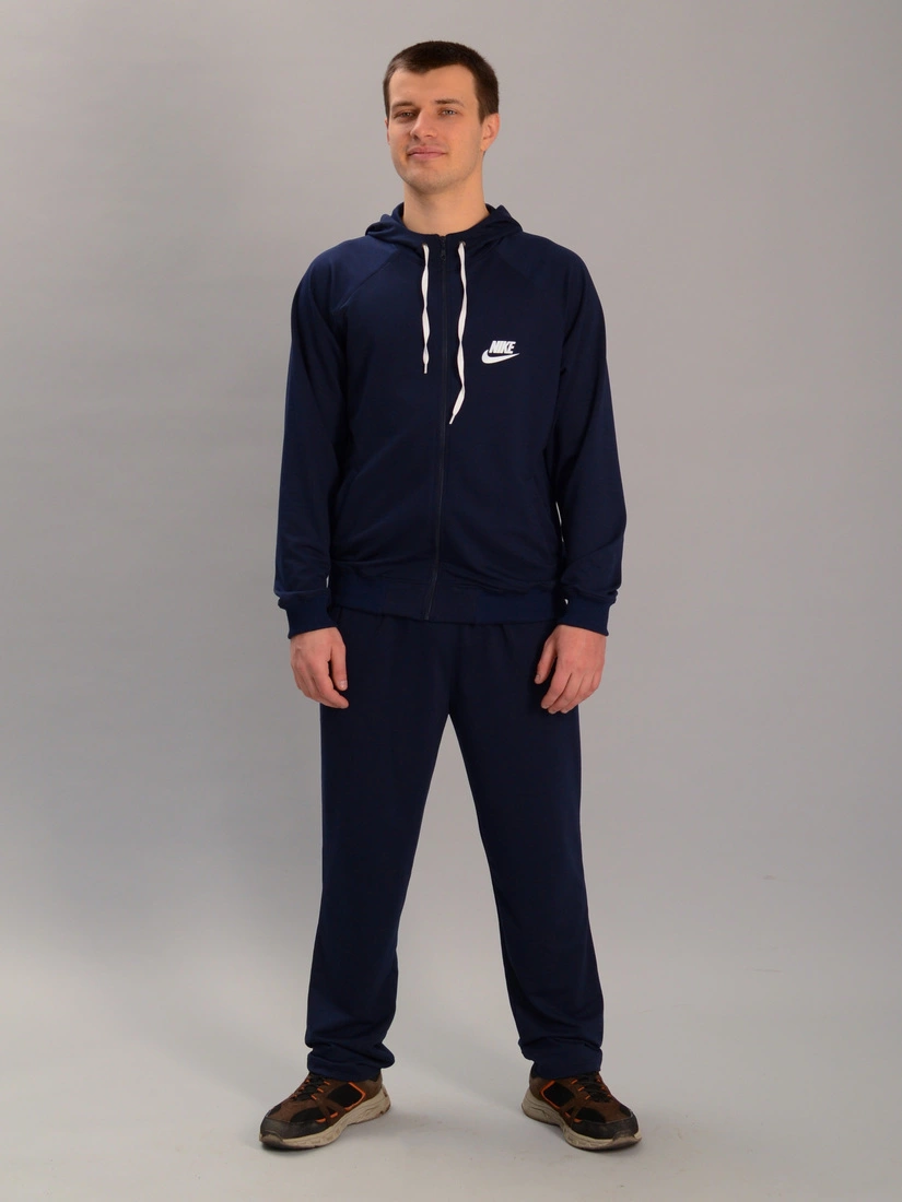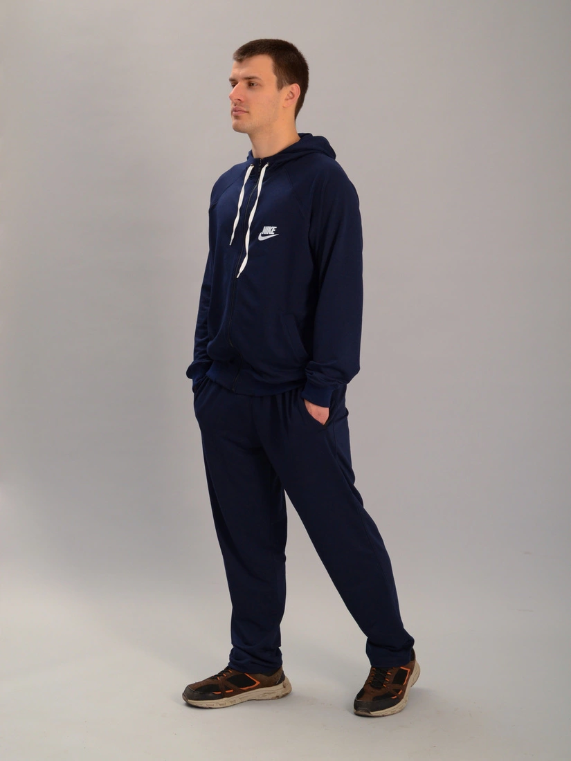 Чоловічий спортивний костюм із кофтою на замку з капюшоном nike синій (батал), Ростовка (3 шт)