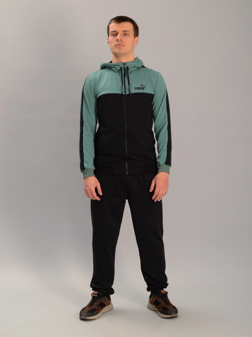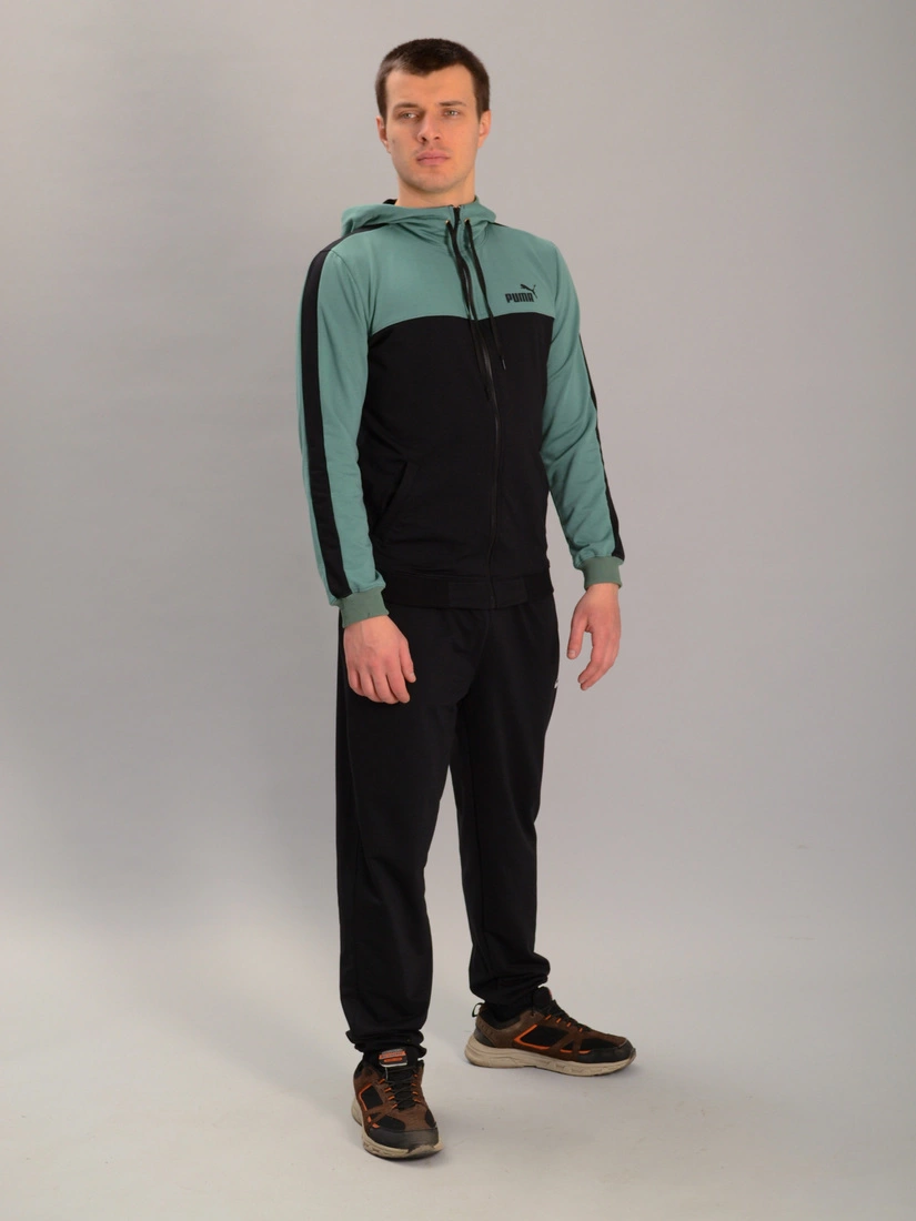 Чоловічий спортивний костюм із кофтою на замку з капюшоном puma м'ятно-чорний, Ростовка (4 шт)