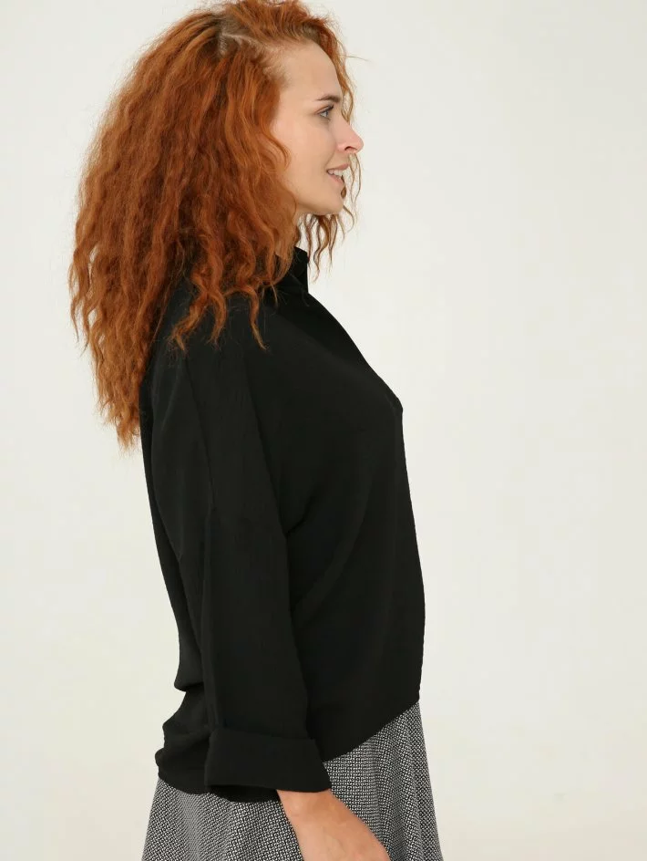 Чорна блуза для любительок суворого одягу чорного кольору. Перевага