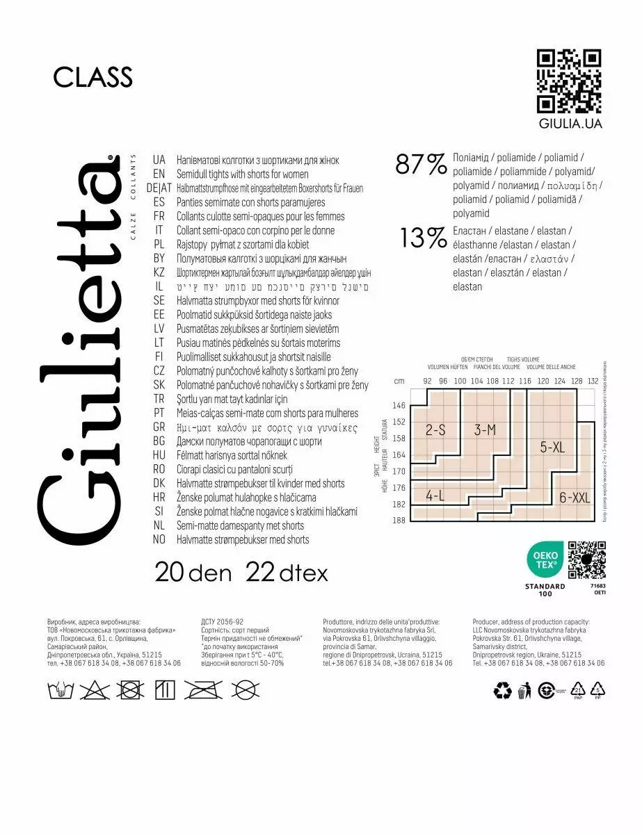 Колготки Giulietta CLASS 20 щільністю 20 den — це витончений варіант для щоденного носіння. Виготовлені з поліаміду, вони забезпечують легкість і надійність, а середня посадка та зручна гумка ідеально адаптуються до фігури, не залишаючи слідів. Колготки з ущільненими шортиками та носком, що підвищує їхню зносостійкість. Однотонний дизайн підкреслить елегантність вашого стилю, роблячи їх універсальним вибором на кожен день.