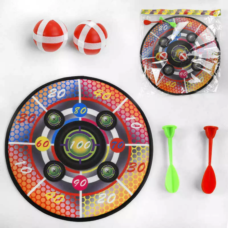 Дартс 999-5 (180/2) односторонній, діаметр 35.5см, 2 дротики, 2 кульки на липучках, гачок для підвішування, в пакеті