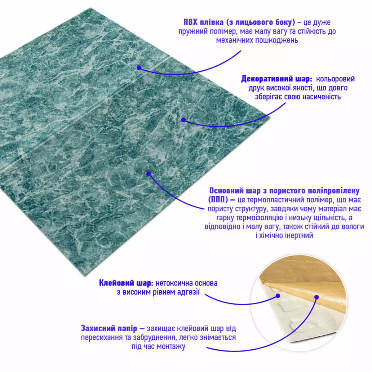 легкий. Його термін служби понад 20 років. Самоклеючі 3D панелі з