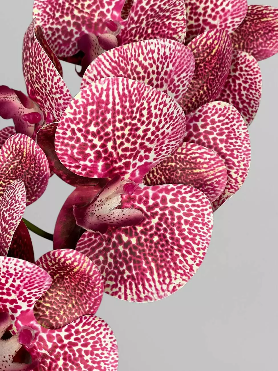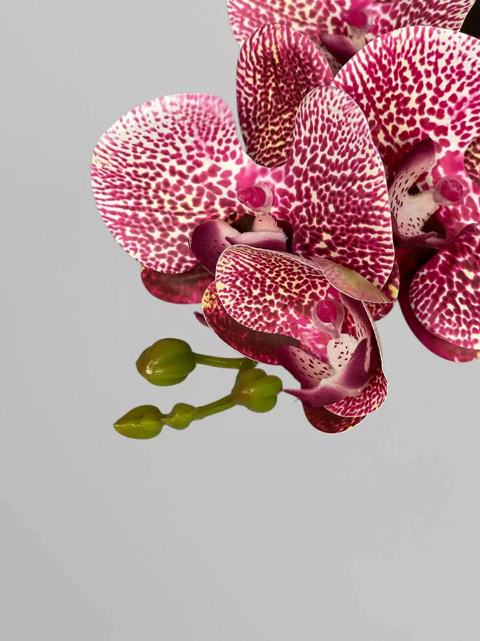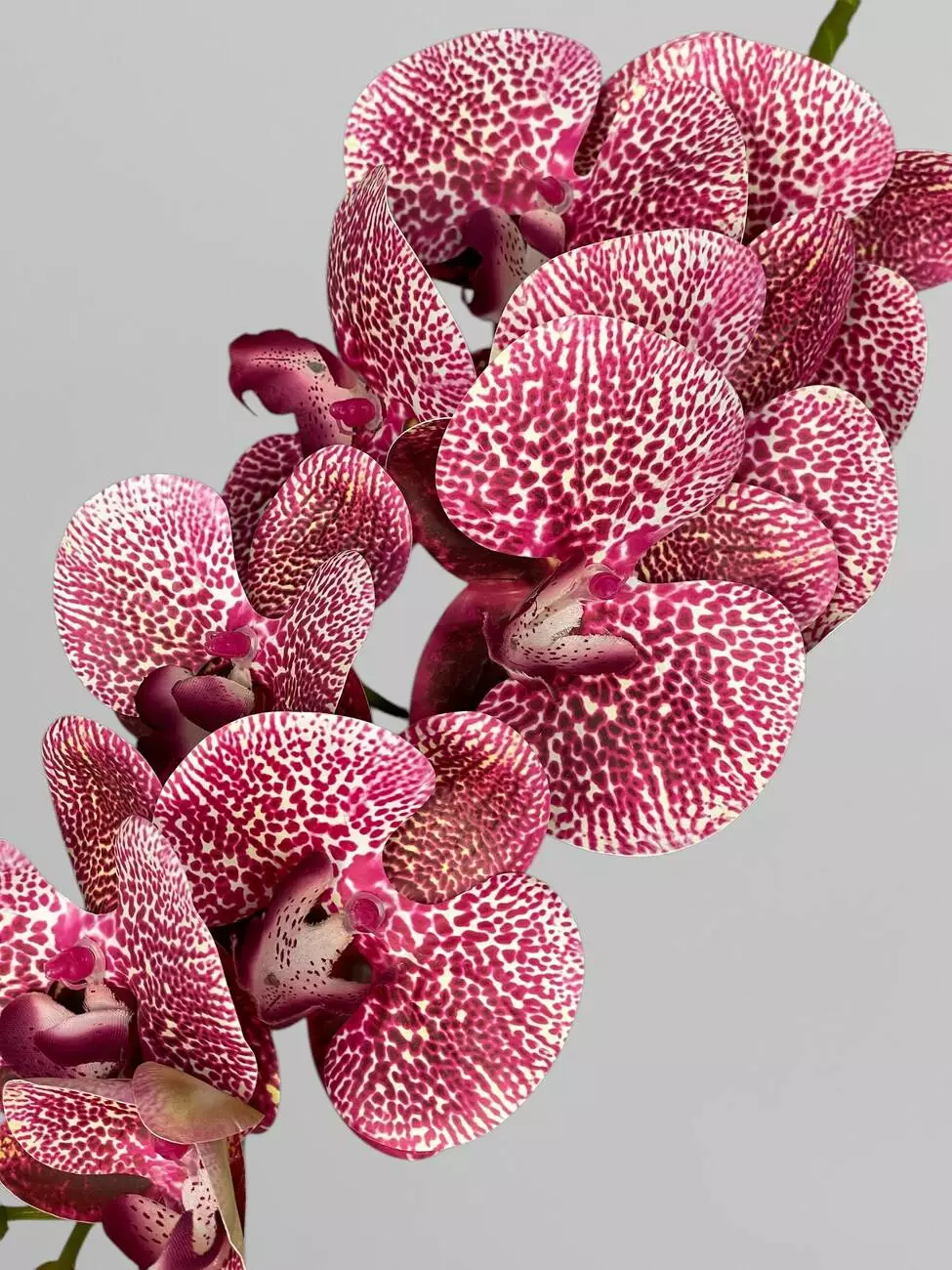 Декоративна гілка орхідеї з латексу на 9 суцвіть, в бордову крапочку, 95 см