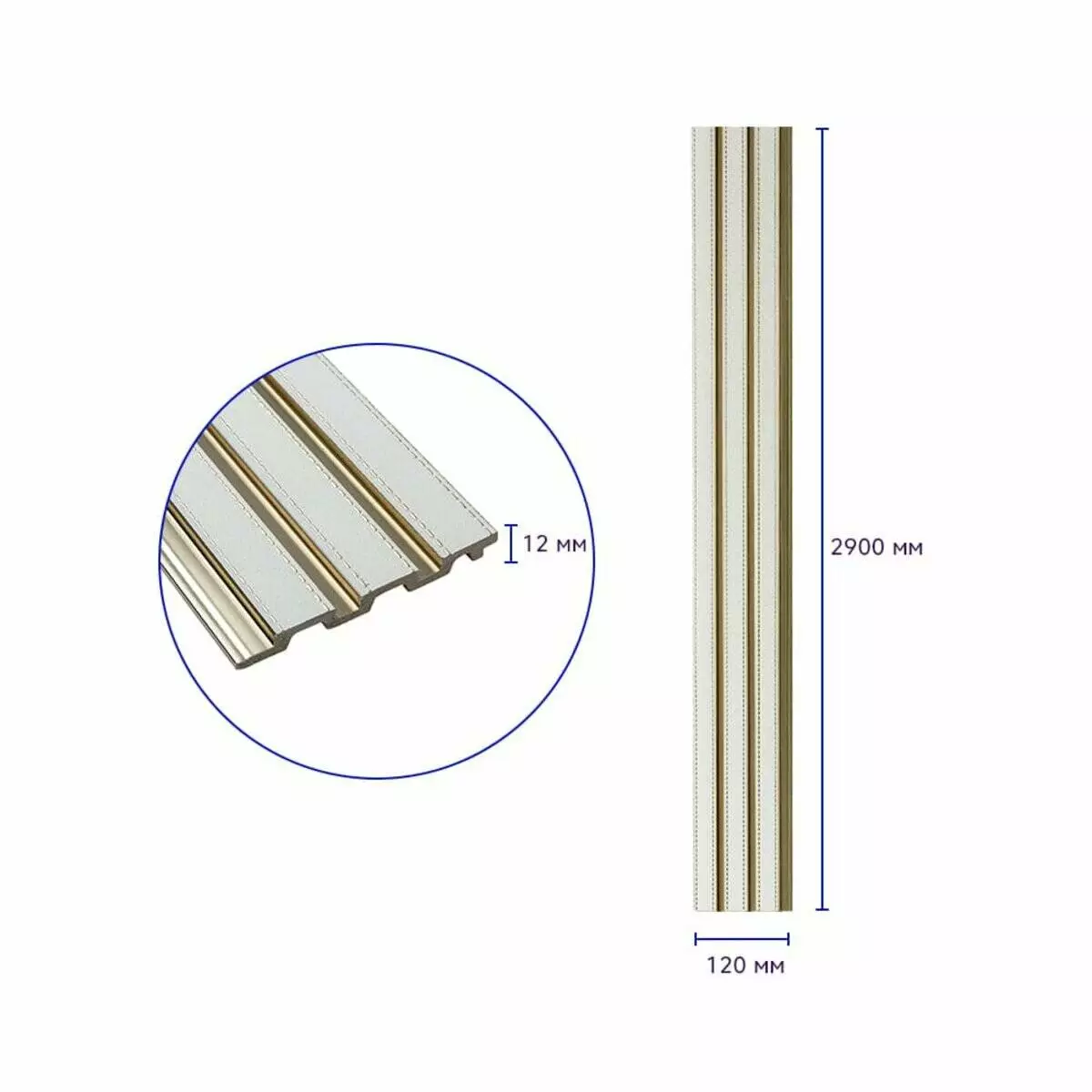 Рейка декоративна PS 2900х120х12мм Під білу шкіру із золотом SW-00002130