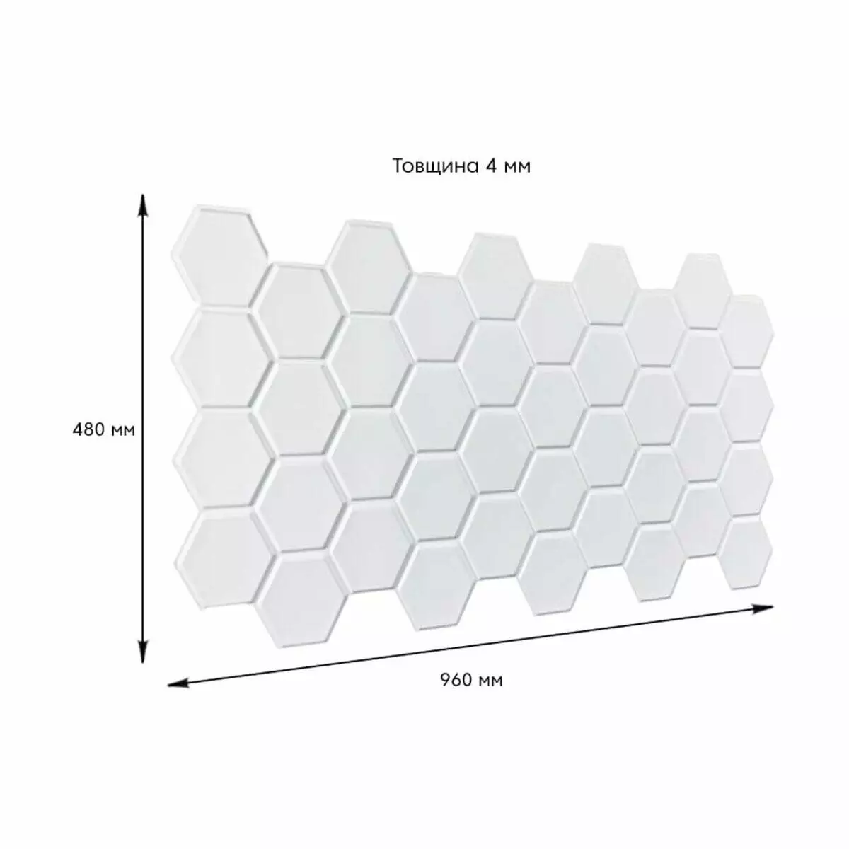 Розмір ПВХ панелі – 960ммх480мм. Товщина – 4 мм.