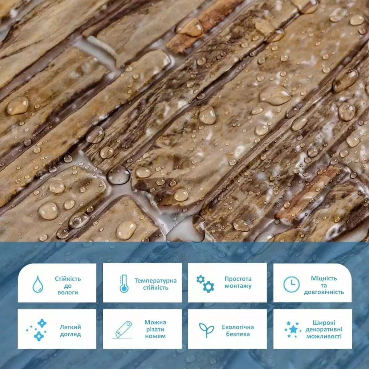 Панелі дуже прості у монтажі, практичні у використанні та довговічні. Для монтажу панелей Вам потрібен буде: клей для ПВХ, ножиці або монтажний ніж, рівень чи лінійка, скотч (для фіксації свіжих панелей).