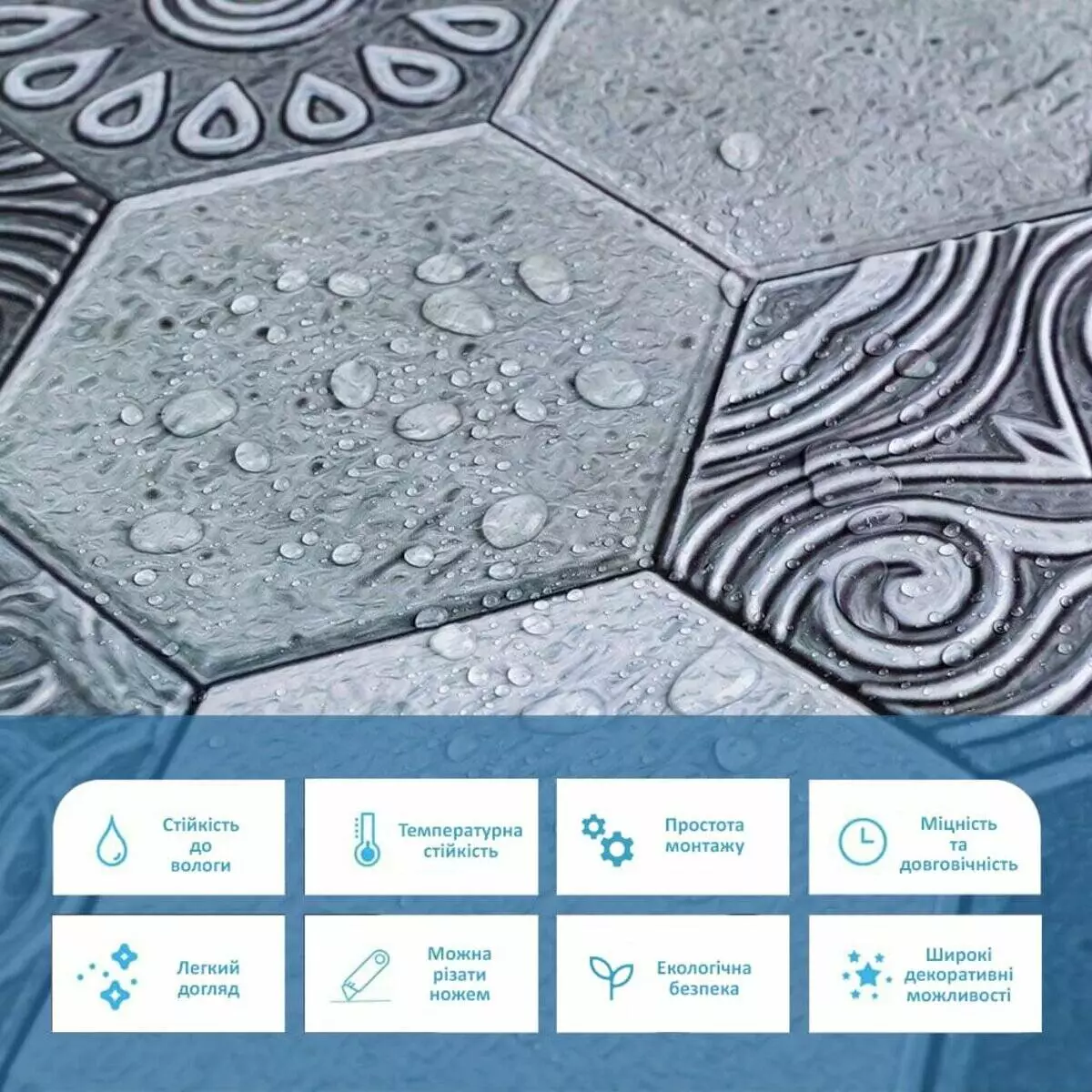 Панелі дуже прості у монтажі, практичні у використанні та довговічні. Для монтажу панелей Вам потрібен буде: клей для ПВХ, ножиці або монтажний ніж, рівень чи лінійка, скотч (для фіксації свіжих панелей).