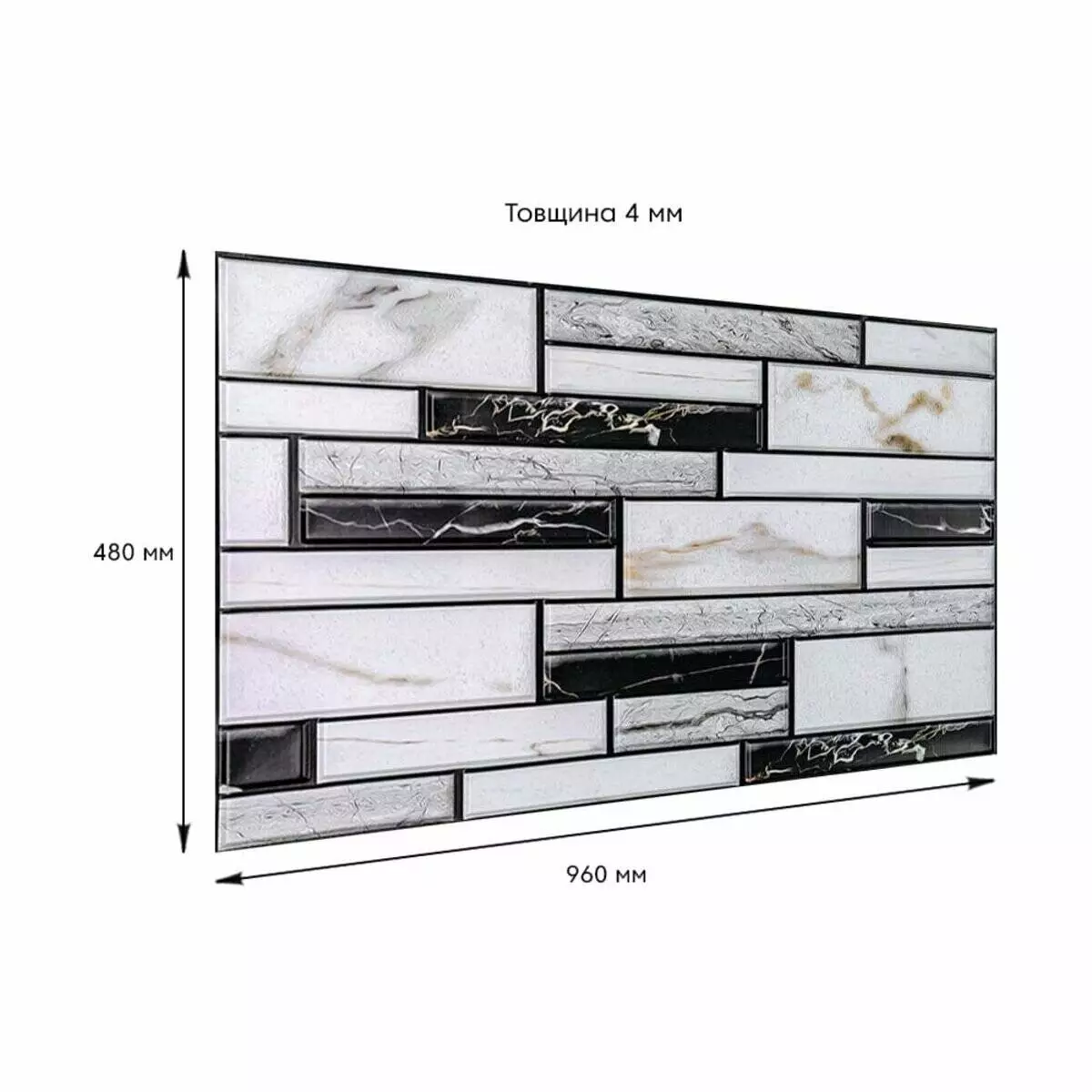 Розмір ПВХ панелі – 960ммх480мм. Товщина – 4 мм.