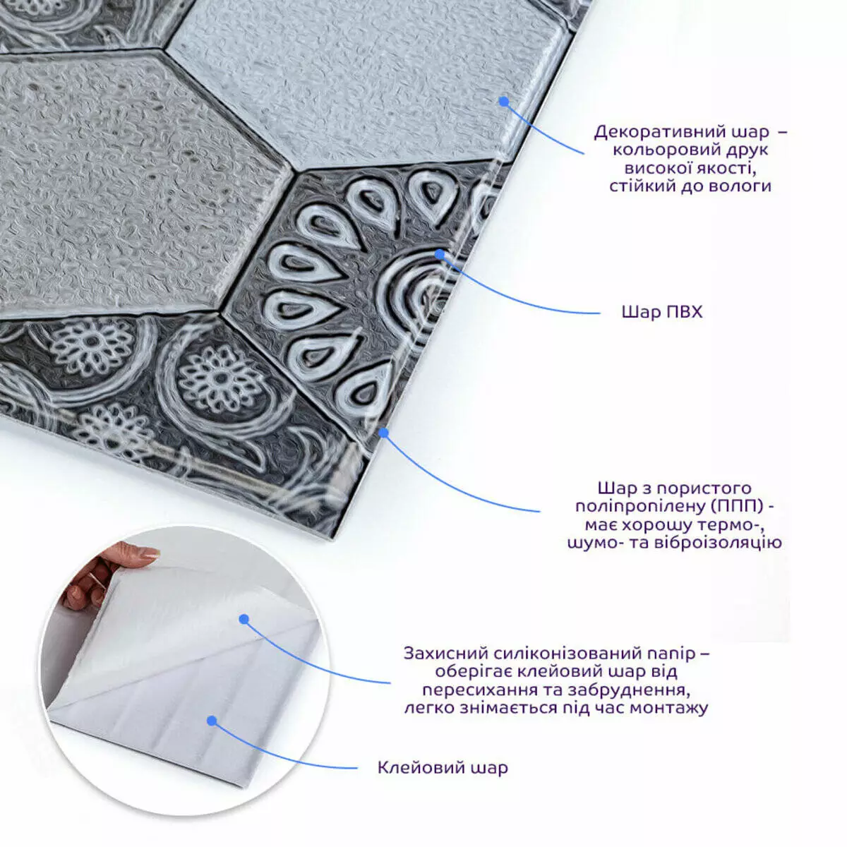 Це невеликі плитки із трендовим малюнком під натуральні матеріали.