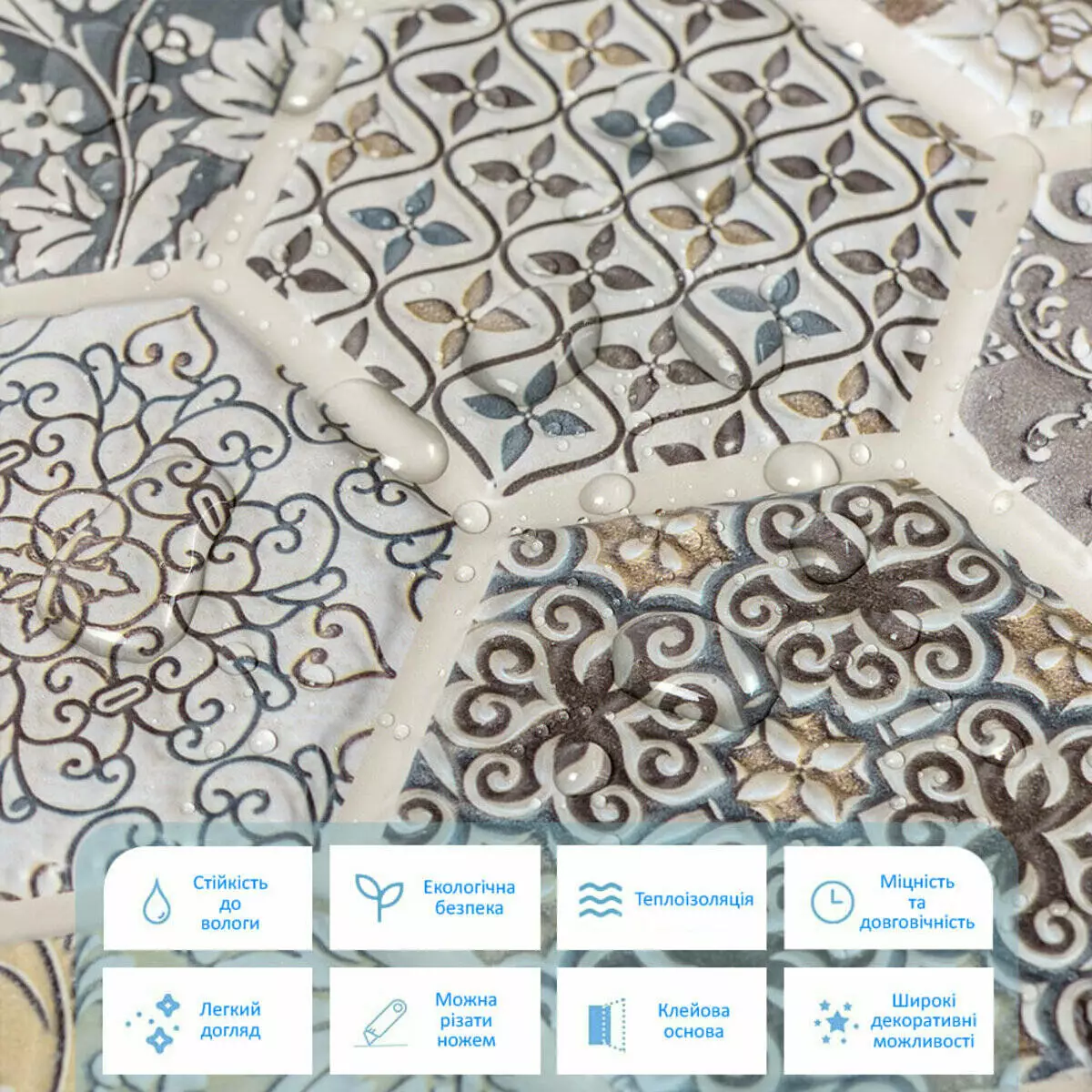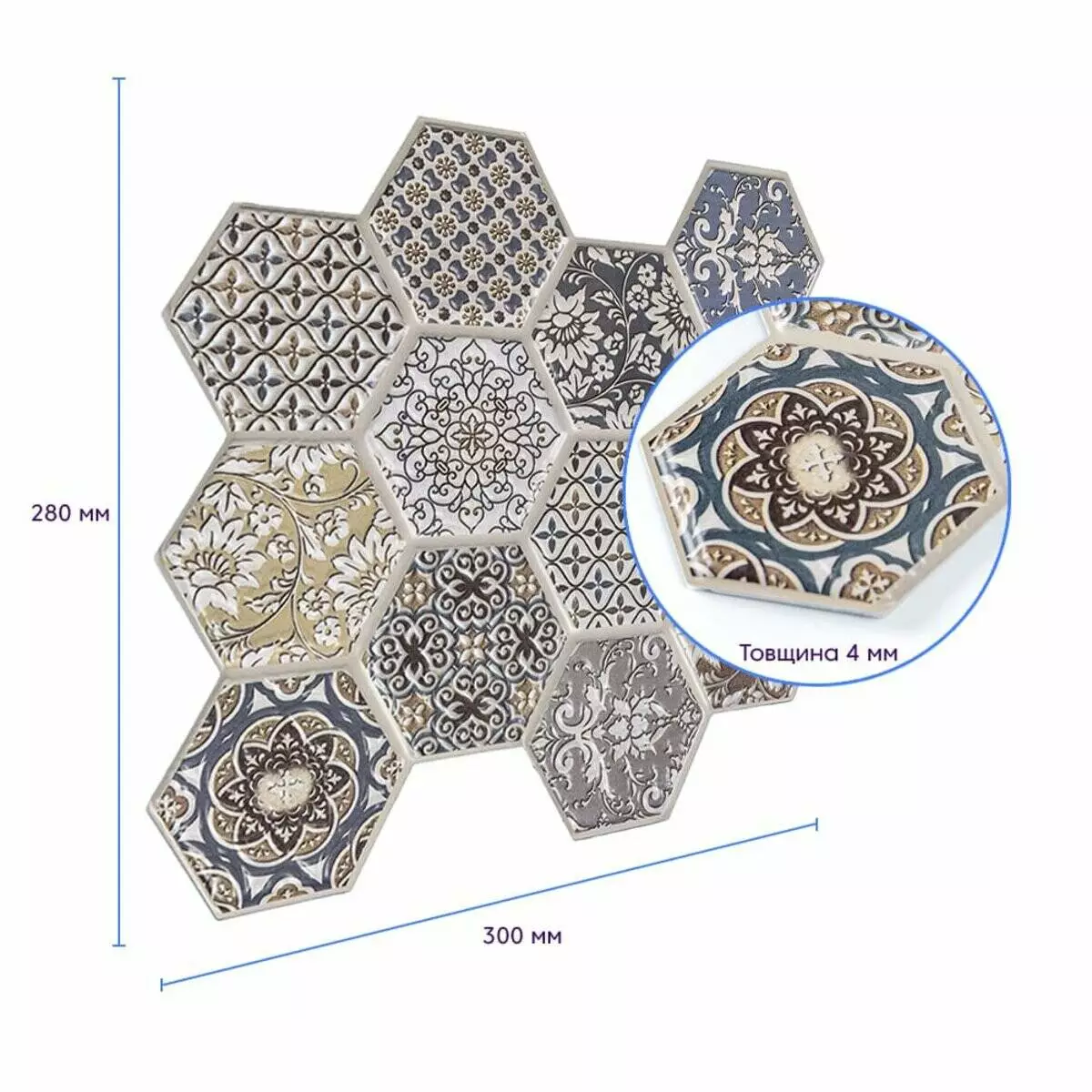 Декоративна ПВХ плитка на самоклейці соти 280х300х5мм,