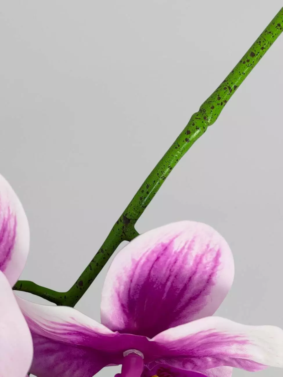 Декоративна штучна орхідея Фаленопсис 9 суцвіть, фуксія з білими краями, 95 см