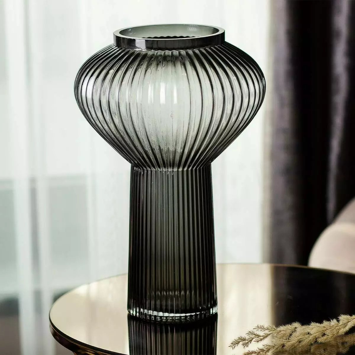 Декоративна ваза-ліхтар Beisi скляна 30 см, сірий