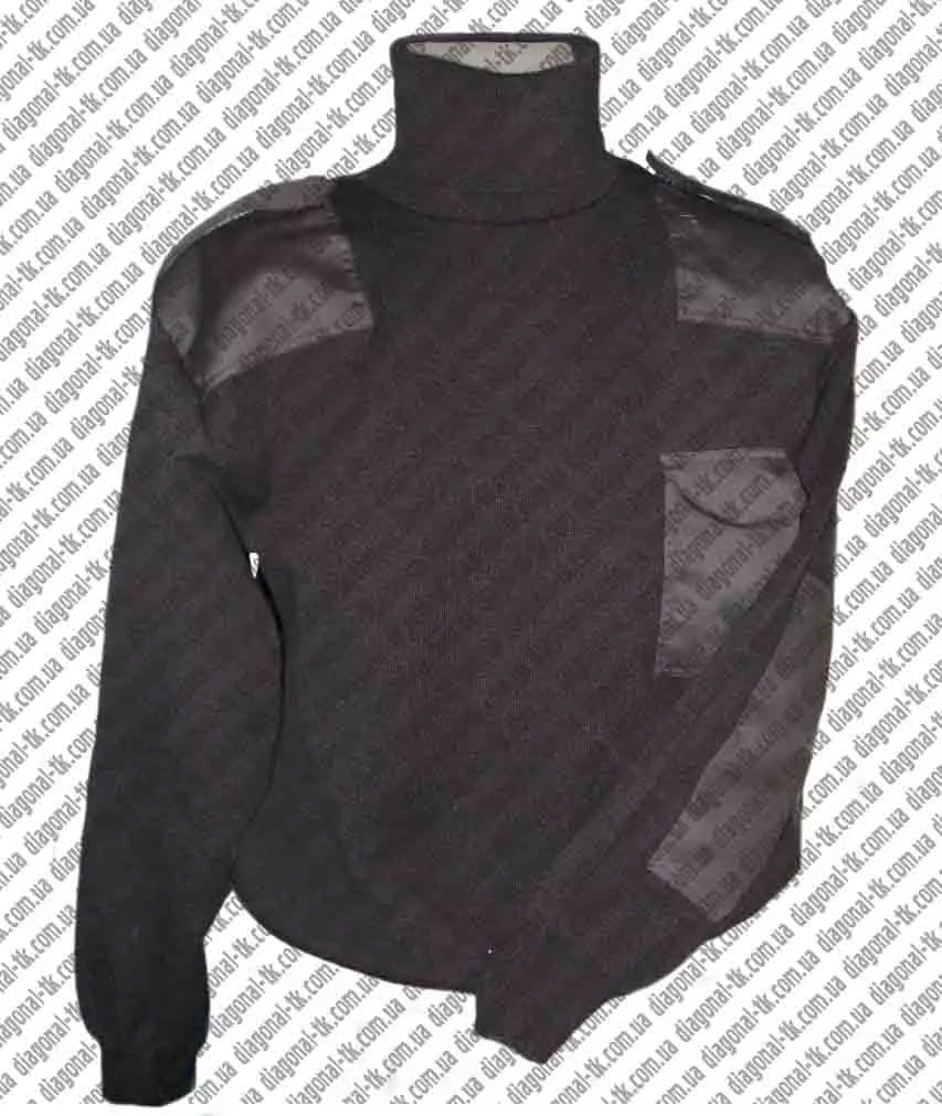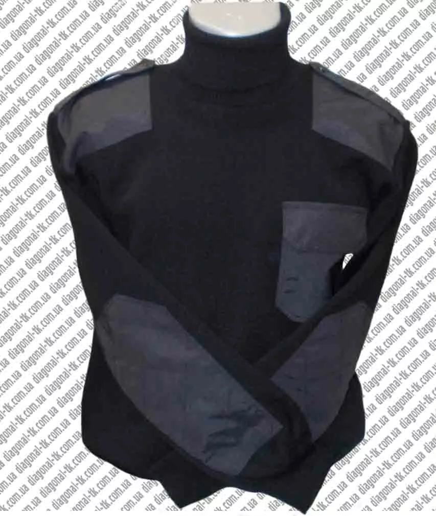 Так как свитер форменный с тканевыми вставками, уточняется их наличие: нагрудный карман с клапаном, подлокотники, погоны, метод крепления погон - пуговицы или липучки. Мы используем для накладок ткань осло. Это Белорусская ткань, сертифицирована для пошива именно форменной одежды. Ткань подбирается в тон свитеру.