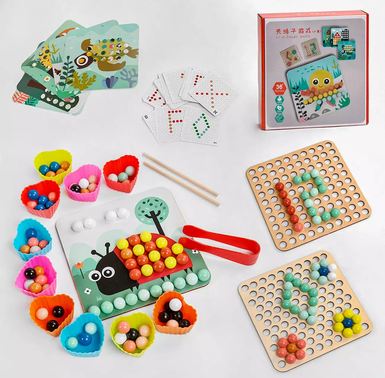 Дерев'яна гра С 47253 "Мозаїка" належать до категорії розвиваючих іграшок для дітей від 36 місяців. Особливості дерев'яної іграшки: - логічна гра; - виїмки для кульок; - спеціальні трафарети із малюнками; - двосторонні картки із завданнями; - розвиває дрібну моторику рук та колірне сприйняття; - дозволяють малюкові рости розумними, винахідливими та допитливими; - сприяє всебічному розвитку та допомагає набувати різноманітних корисних навичок. Грати можна двома способами: 1. Розфарбуй кольоровими кульками картонний шаблон із тваринами. 2. Склади правильний малюнок за шаблоном з двосторонніх карток. Вік: від 36 місяців. Матеріал: дерево. Комплектація ігрового набору: - ігрове поле; - 2 дерев'яні вкладиші з осередками; - 10 силіконових форм; - набір кульок; - 36 двосторонніх карток; - 6 трафаретів; - палички; - ложка; - щипці.
