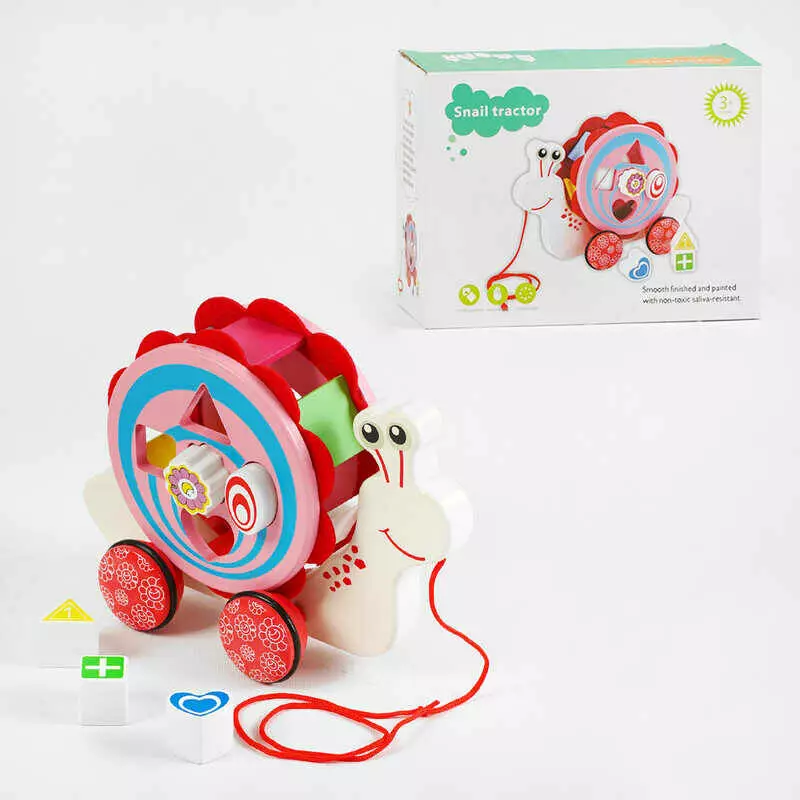 Каталка C 64011 (24) “Равлик”, дерев’яна, сортер, 5 фігурок, обертається мушля, в коробці
