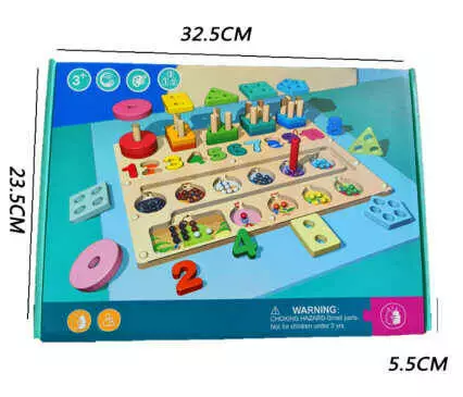 Логічна дерев’яна дошка C 74580 (24) 30х22.5х5 см, сортер, кілочки, магнітний стилус, геометричні фігури, цифри та магнітні кульки, в коробці