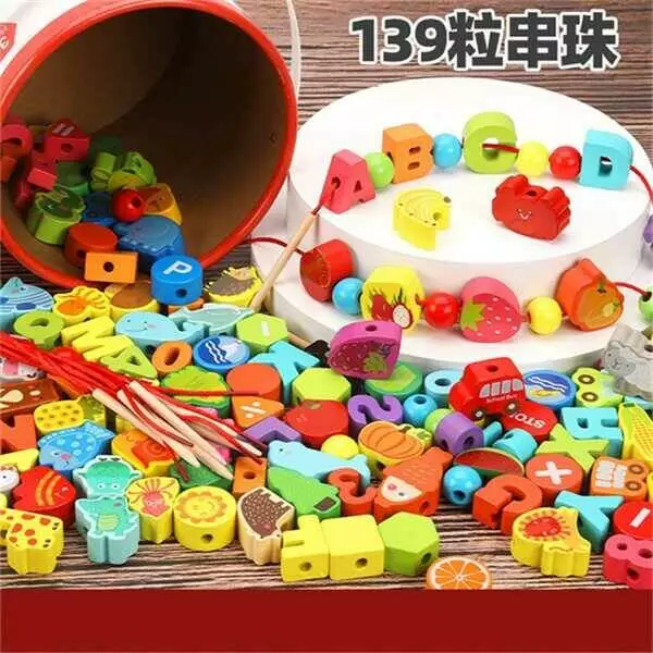 Шнурівка дерев`яна С 74443 (18) 10 шнурків з дерев’яним краєм, абетка, тварини, транспорт, у відрі
