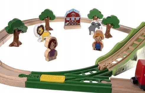 фігурки, тварин і кран. Елементи поїзда з'єднані за допомогою