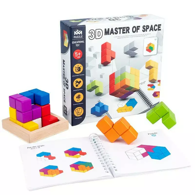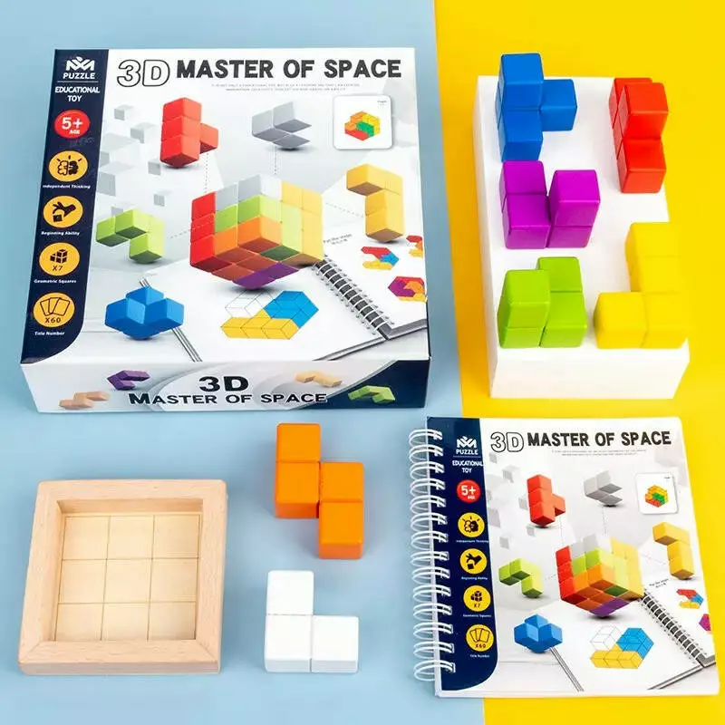 Дерев'яний конструктор Монтесорі "Куб" на 7 елементів разом з 60