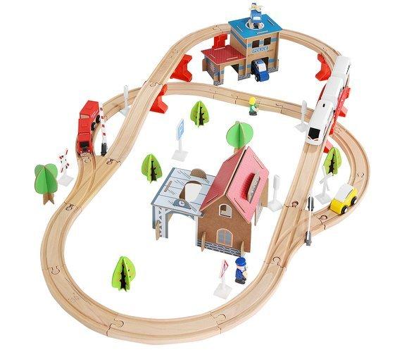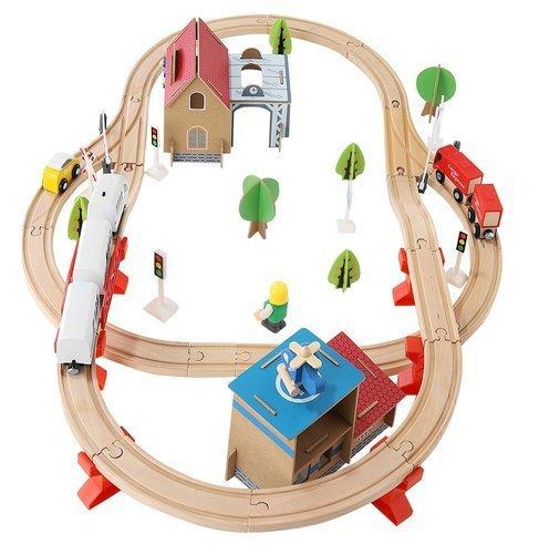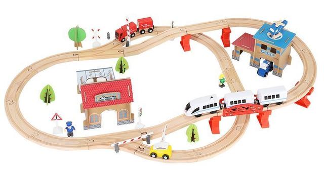 Дерев'яний трек - це чудова ідея для розвитку уяви та підтримки творчих здібностей вашої дитини. Він підходить як для гри в приміщенні, так і на відкритому повітрі. Набір складається з 89 прекрасно виконаних і красиво оброблених деталей, які можна розташувати відповідно до ваших власних ідей. До набору входять, зокрема, трек, поїзд, 2 машини, поліцейський гелікоптер із посадковим майданчиком, вантажівка з причепом, люди, залізнична станція, будівля поліції з гаражем, міст, залізничний переїзд зі шлагбаумами, дерева та дорожні знаки. У майбутньому трек можна змінити та доповнити додатковими елементами, а весь набір можна вільно модифікувати. Гра позитивно впливає на розвиток уяви дітей і покращує їхню здатність інтегруватися та взаємодіяти з іншими дітьми.