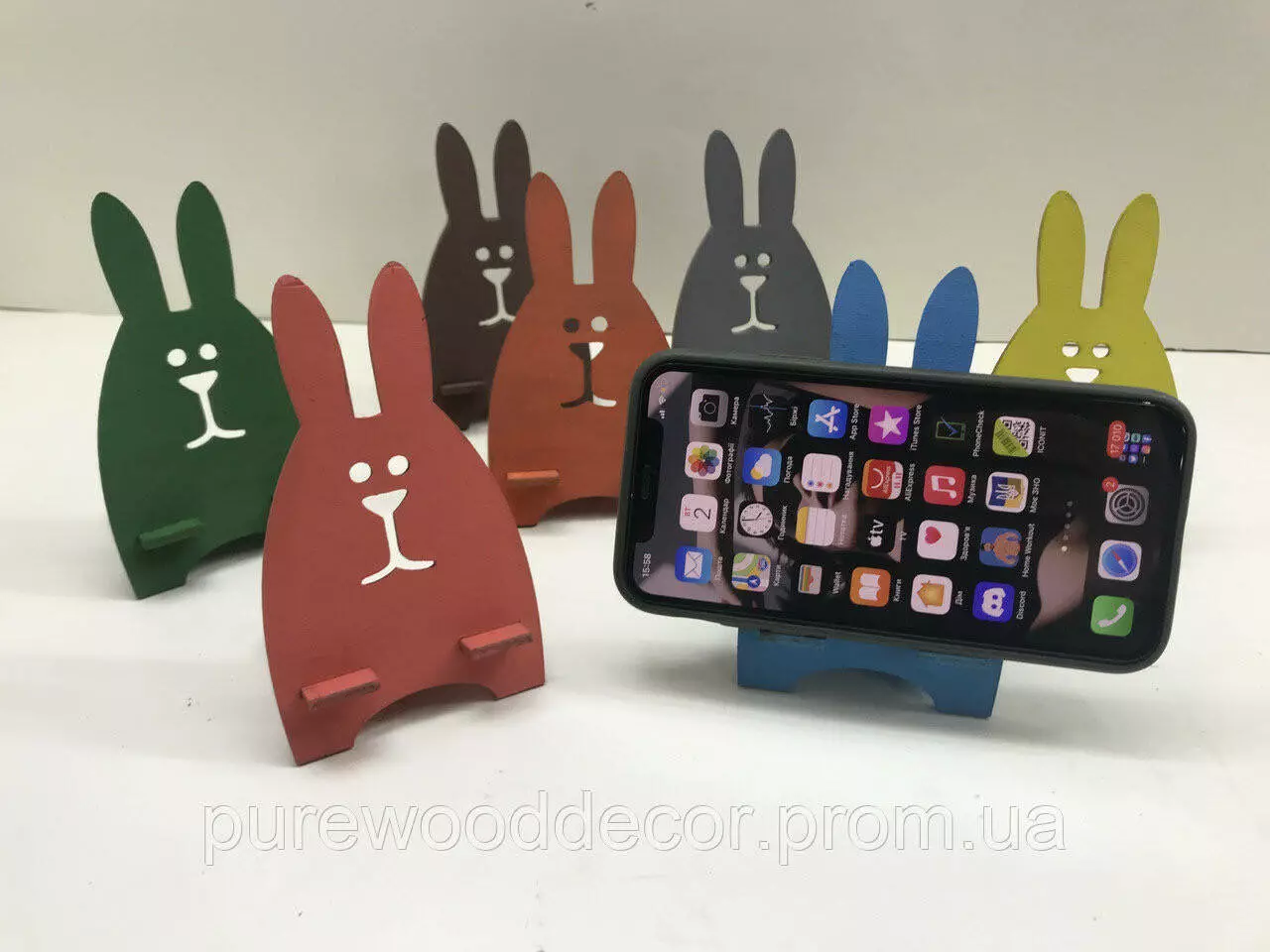 Деревянная подставка для телефона состоит из двух частей, которые