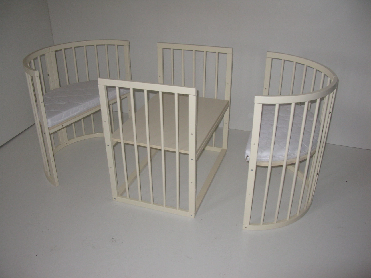 Дитяче ліжечко трансформер Каприз. Трансформується в кругле ліжечко, овальне, стіл, крісла та манеж, маєтниковий механізм. Матрац входить в ціну