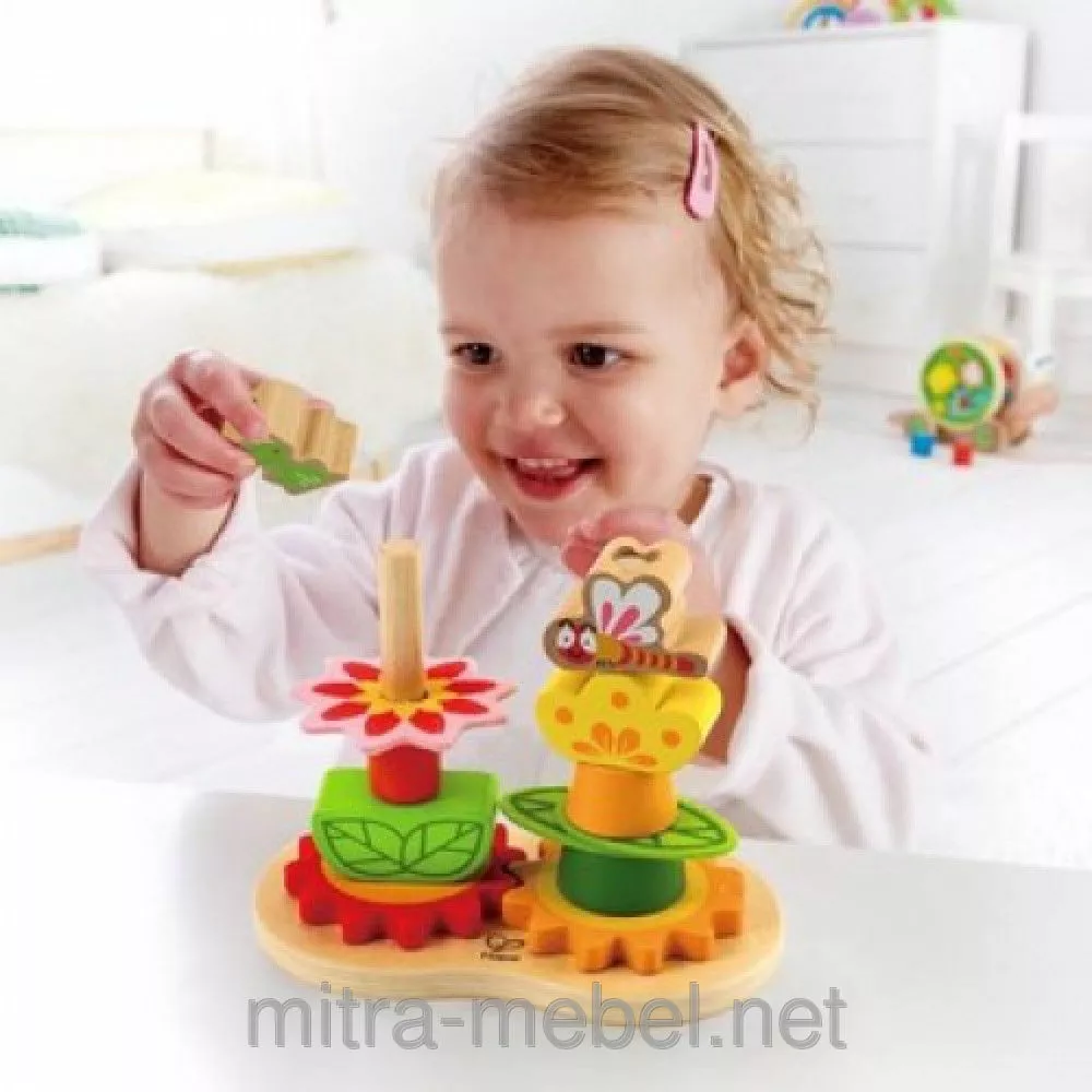 пчелка. Малышу нужно собрать для них эти цветочки. Детали пирамидки
