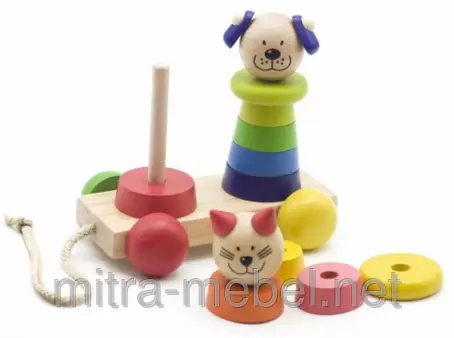 ?нтересная каталка с пирамидками. ?грушка сделана из дерева, а