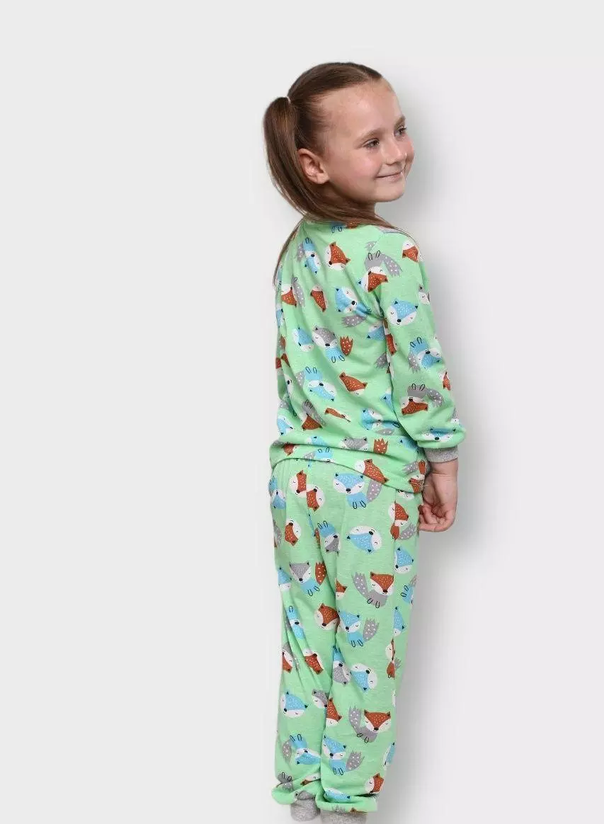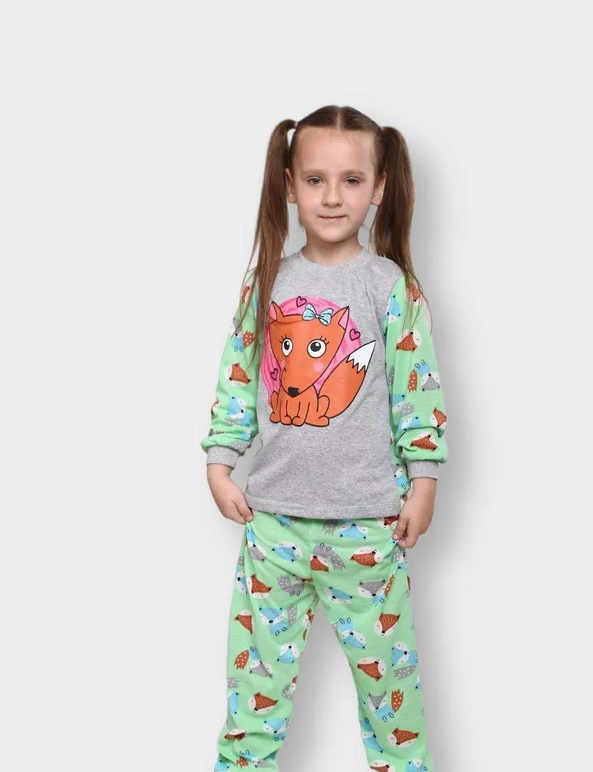 Модная и удобная детская пижама для девочки. Комплектация: кофта с длинным рукавом+штаны. Материал: кулир. Мягкая и приятная к телу. Свободный и удобный крой. Штанишки на мягкой резинке. На штанинах и на рукавах манжеты.