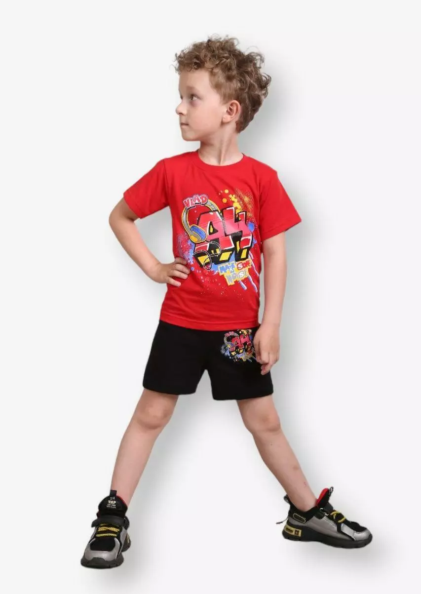 Детский комплект с принтом А4 для мальчиков кулир (состав):Легкое,