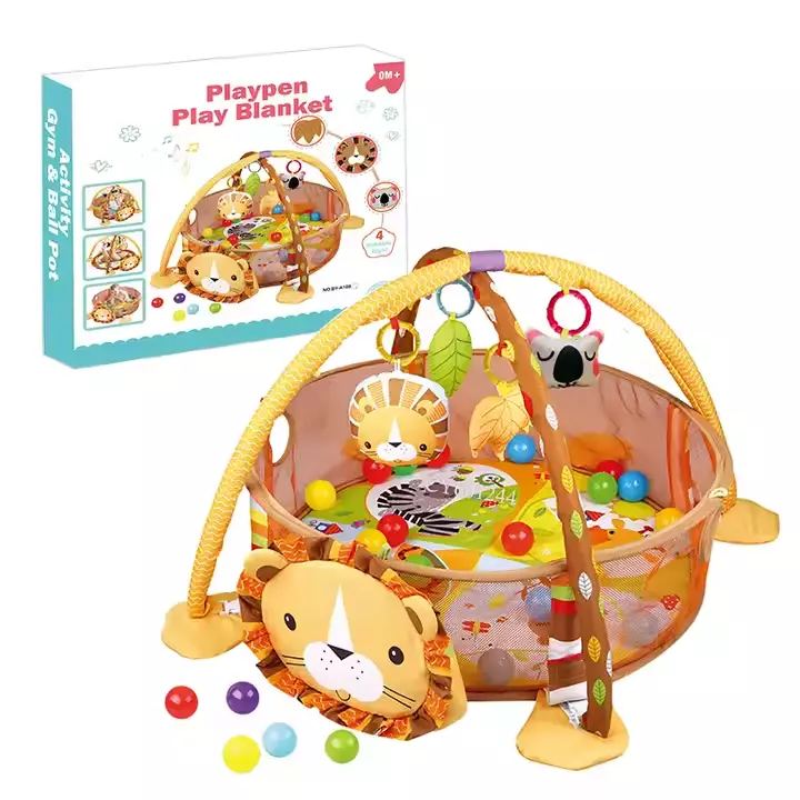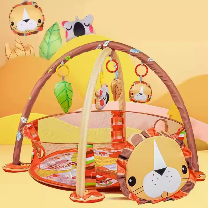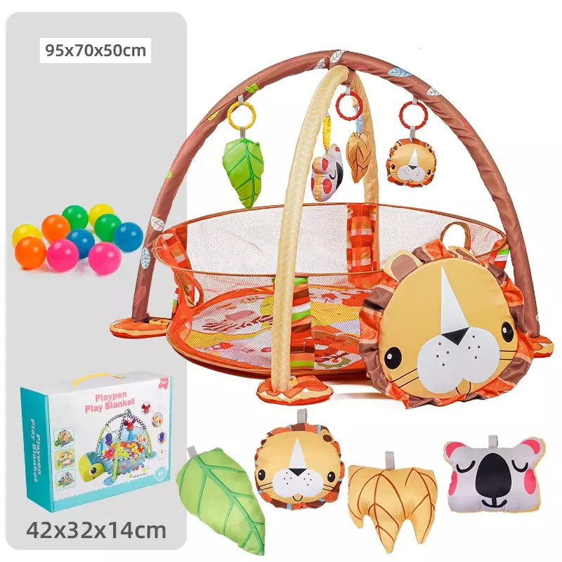 Детский развивающий коврик-манеж с дугами и шариками, модель лев
