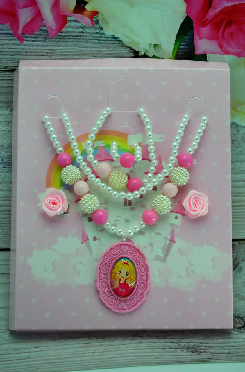 Набор украшений для девочек розового цвета.
