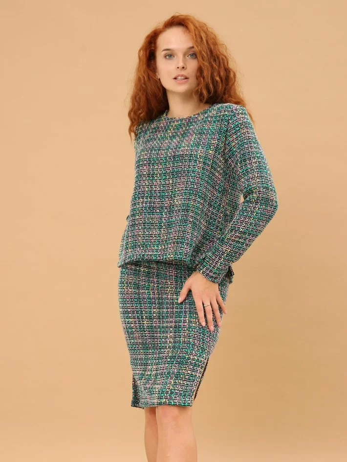 горловиною і довгим рукавом та спідниця-олівець з розрізами з