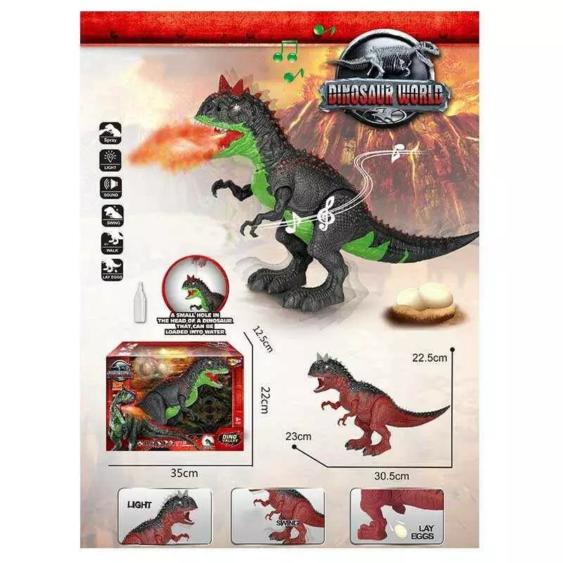 Динозавр NY 040 A (36/2) 2 кольори, підсвічування, парогенератор, рухається, несе яйця, звук, рухливі кінцівки, в коробці