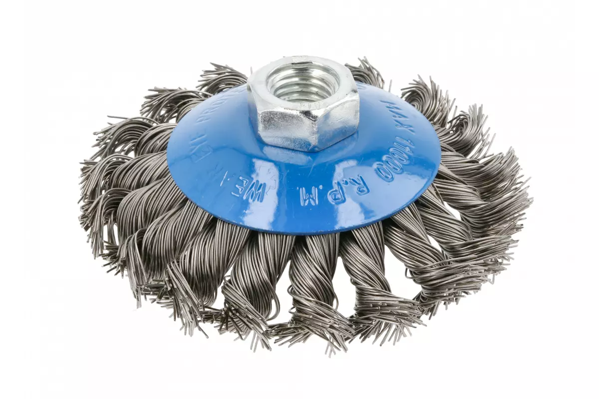 <p>Щетка имеет дисковую форму и стальной крученный провод.