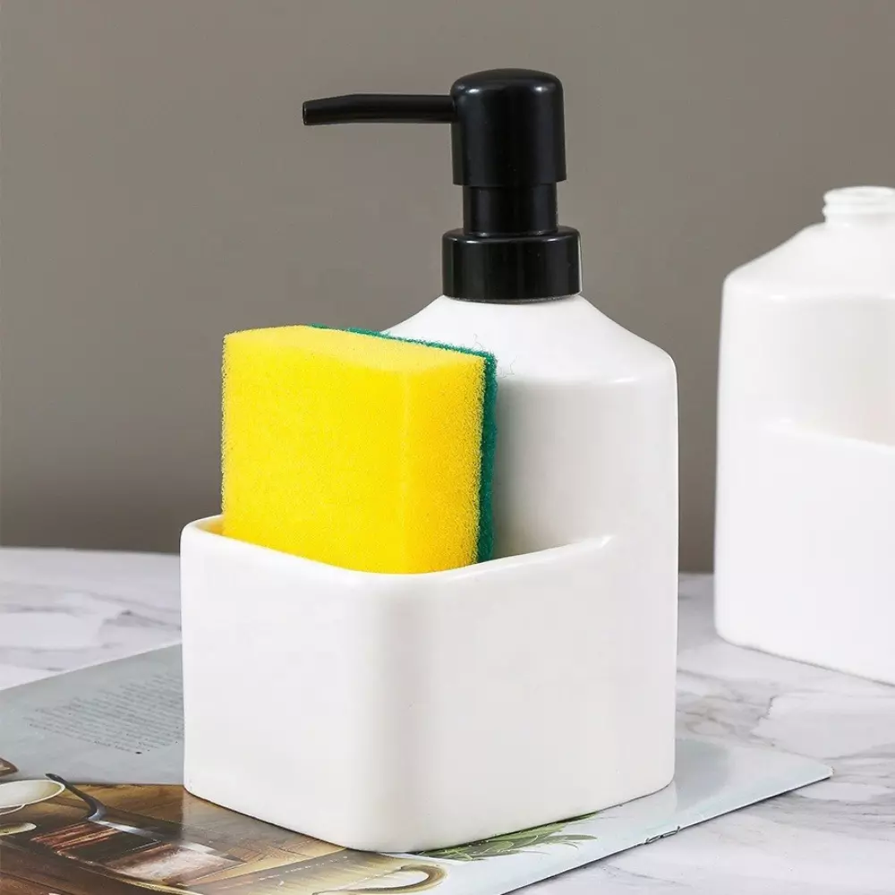Керамічний диспенсер для мила з відсіком для губки — стильний і