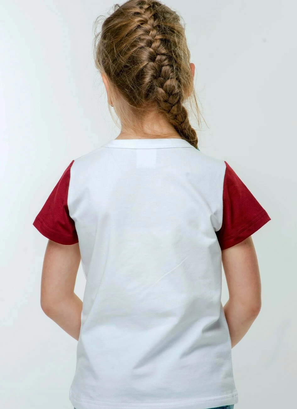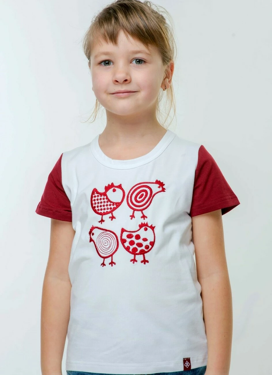 Дитяча футболка із вишивкою червоного кольору гладдю, яка чудово