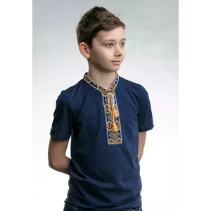 Дитяча футболка темно-синього кольору з вишивкою “ Козацька” з кутасиками для справжніх козачків! Літня футболка виготовлена з натуральної бавовни та еластану, дуже приємна та ніжна на дотик і комфортно носиться в спекотну погоду. Така прекрасна вишиванка прикрасить кожного хлопчика при будь-якій урочистості. А витончений узор на вишитій футболці є символом родючості, чоловічої мужності та впевненості. Золотий або жовтий колір є символом благополуччя, достатку, радості. Вишиванки з жовтим орнаментом допоможуть принести у ваше життя матеріальний достаток. Придбайте у нашому інтернет-магазині "Меланіка" дитячу вишиту футболку для найкращих моментів вашої дитини.