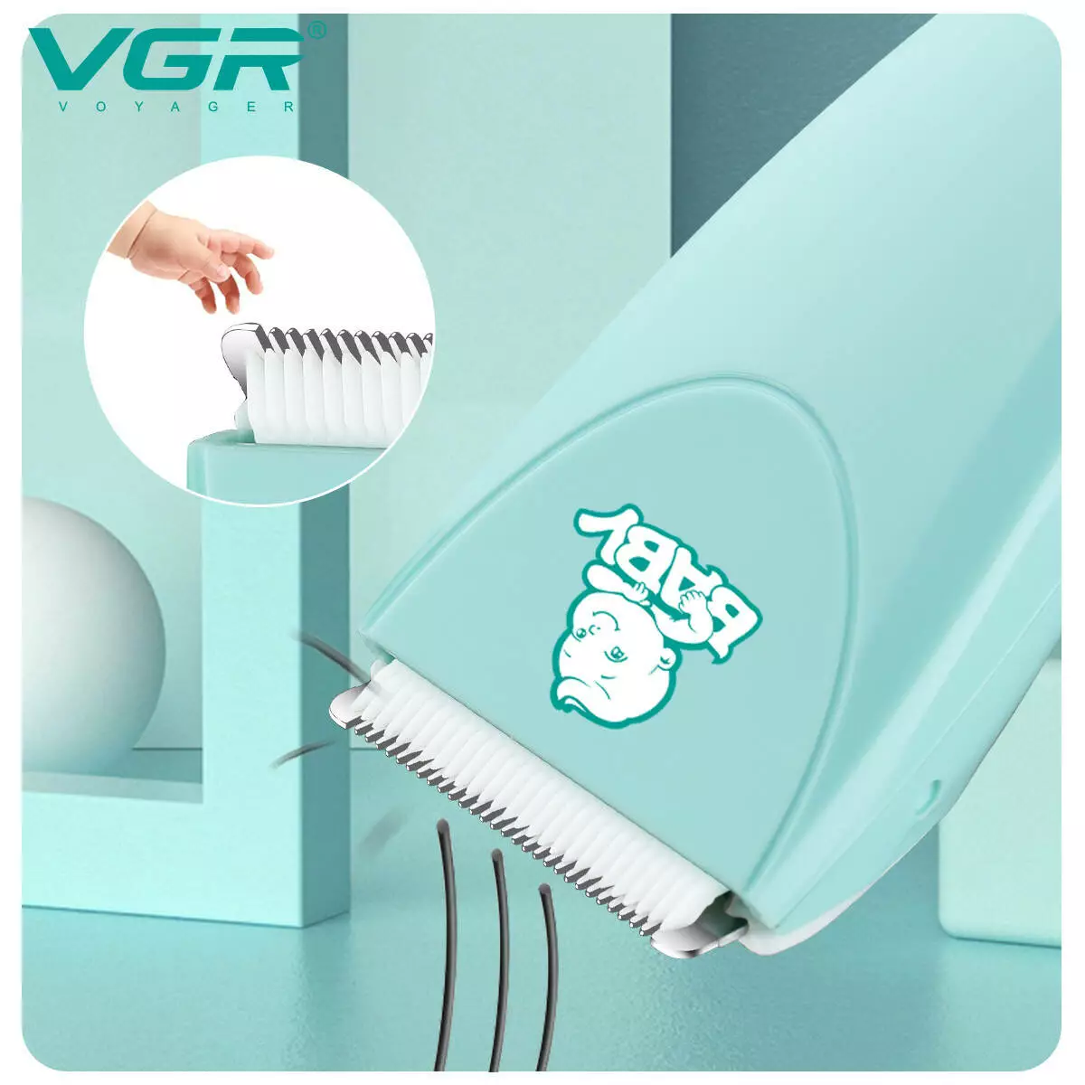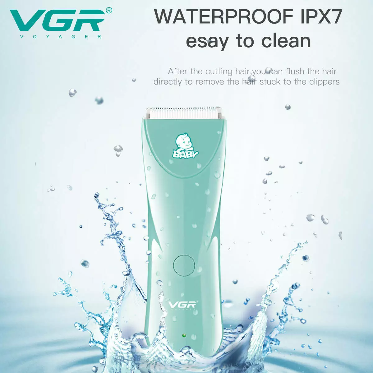 Дитяча машинка для стриження VGR V-150 MINT, 3 безпечні насадки, бесшумна, IPX7