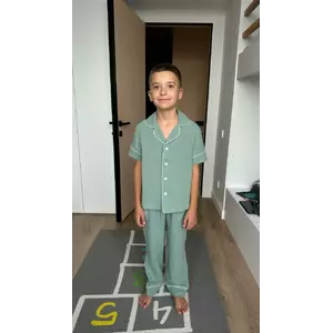 Дитяча муслінова піжама VIVA — комфорт для всієї родини Піжама з серії VIVA — це м’якість і натуральність, які відчуваються в кожному дотику. Створена для дітей ростом від 116 до 146 см (приблизно від 5 до 12 років), ця піжама дарує свободу рухів та затишок під час сну й ігор. Комплект: сорочка з коротким рукавом на ґудзиках + штани з еластичною резинкою та кулискою для регулювання Колір: натуральний евкаліпт — спокійний і універсальний Тканина: двошаровий муслін з 100% бавовни — дихаючий, м’який і гіпоалергенний Особливості моделі: - Еластична резинка та кулиска на штанах для ідеальної посадки - Манжети на штанах із можливістю підвороту — піжама росте разом із дитиною - Декоративний кант додає стильний та охайний вигляд Сорочка на ґудзиках із коротким рукавом — комфортна у теплій порі або при комфортній температурі в домі Муслін — натуральний і дихаючий матеріал, що піклується про шкіру малюка Піжама VIVA — частина сімейної колекції, у якій є аналогічні моделі для дорослих. Тепер ваша родина може насолоджуватись затишком і гармонією в однакових піжамах, створюючи теплі сімейні традиції.