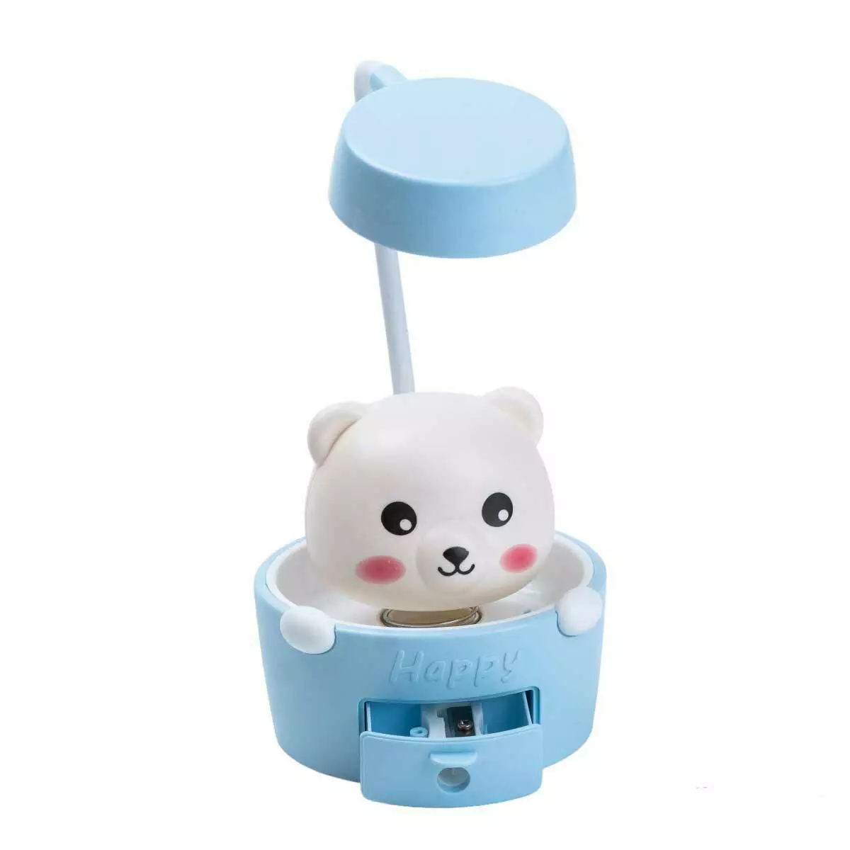 Дитяча настільна лампа Cute Pets з точилкою для олівців, блакитний