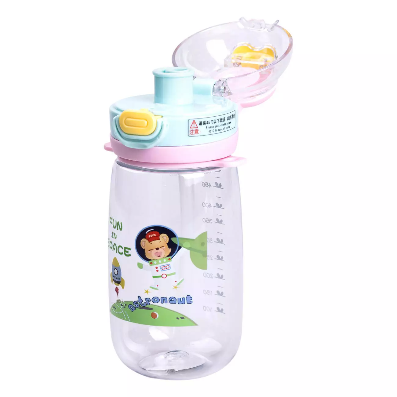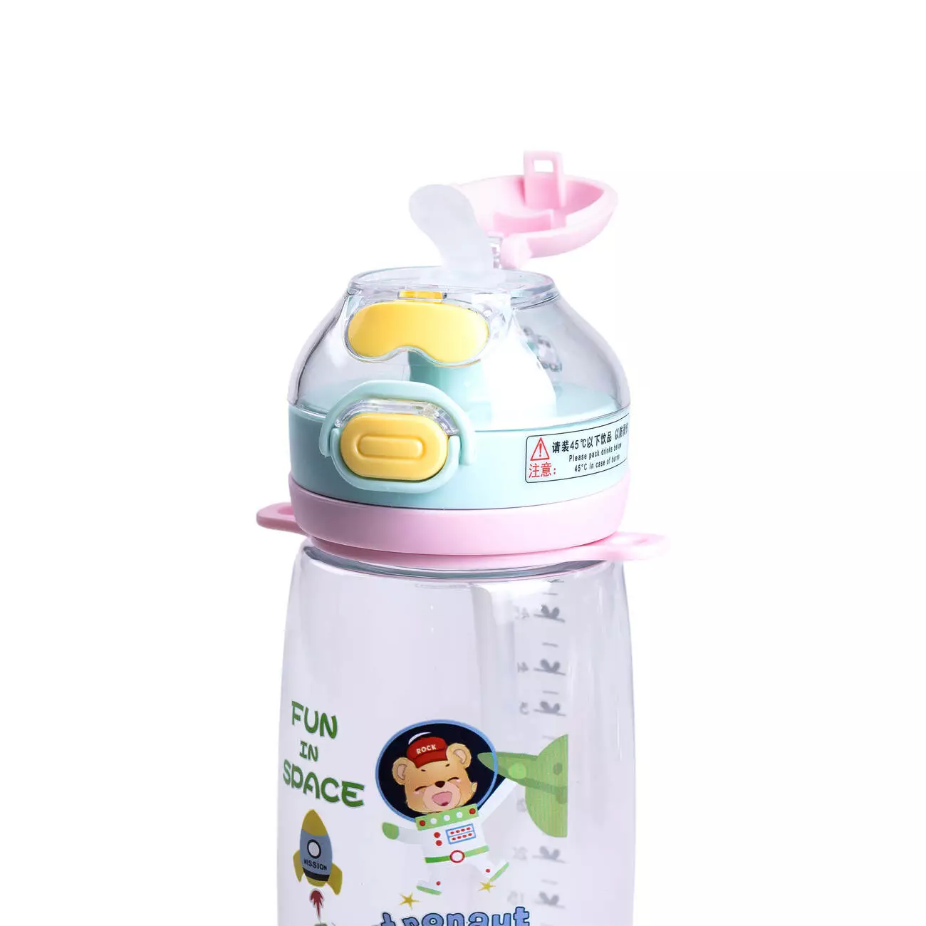 Дитяча пляшка для напоїв об'ємом 550 мл призначена для комфортного використання під час прогулянок, навчання або активного відпочинку. Вона оснащена трубочкою, що дозволяє зручно пити без нахилу пляшки. Завдяки ремінцю пляшку можна носити на плечі або прикріплювати до рюкзака, що забезпечує зручність у перенесенні.