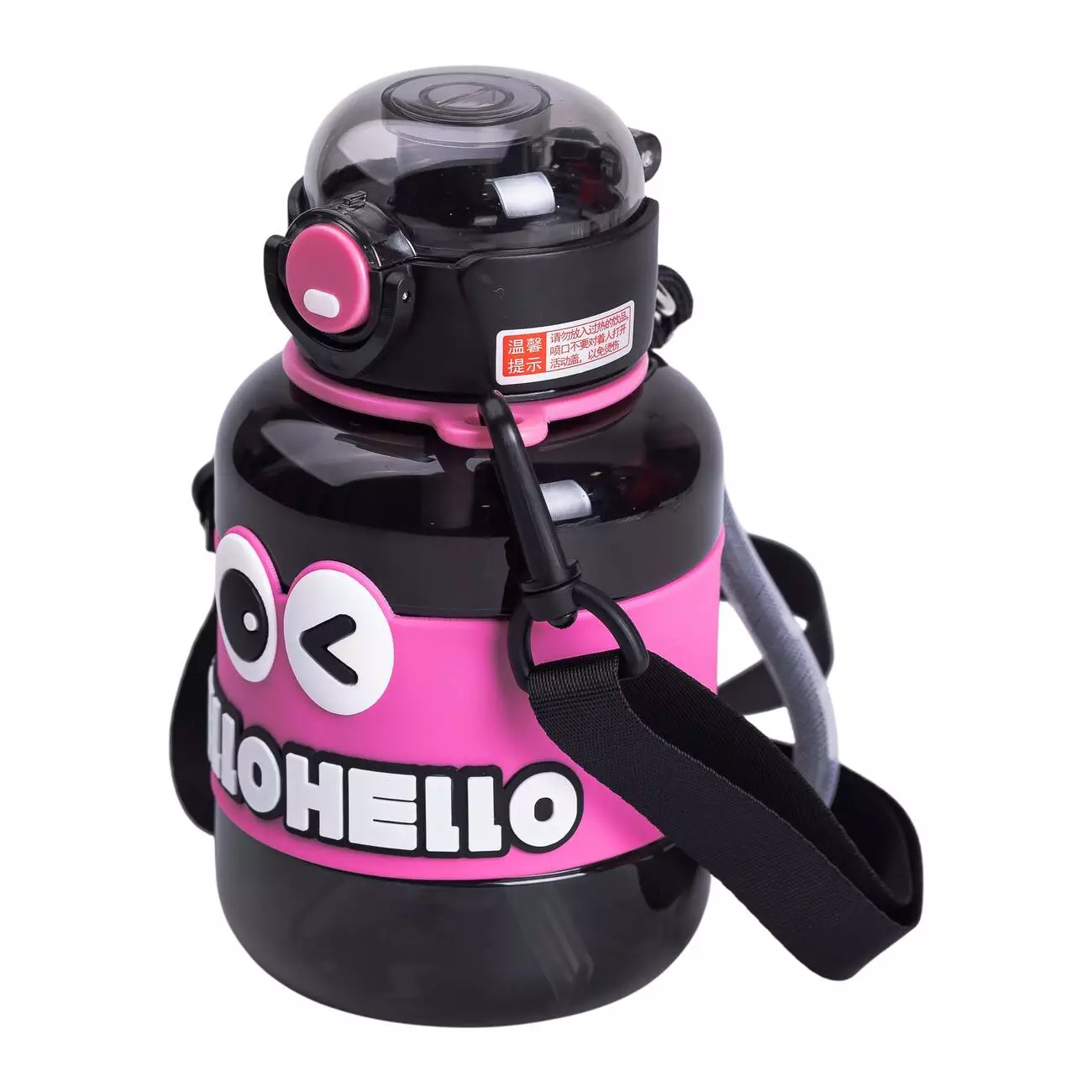 Дитяча пляшка для води HELLO-HELLO 680 мл з ремінцем, чорний