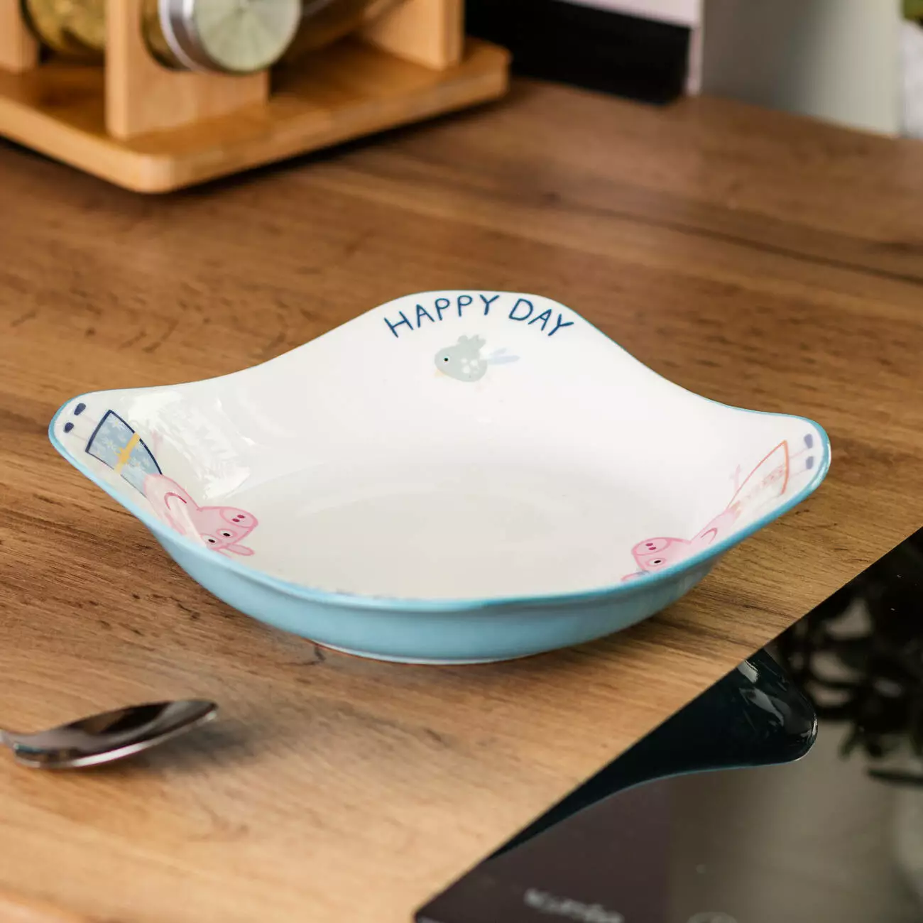 Дитяча тарілка Happy Day — це чудовий посуд для маленьких гурманів, виготовлений з якісного порцеляни. Об'єм тарілки становить 350 мл, що робить її ідеальною для подачі різноманітних страв, таких як каші, супи чи легкі закуски. Яскравий блакитний колір тарілки в поєднанні з милою ілюстрацією свинки Пепи робить її привабливою для дітей і додає веселого настрою під час приймання їжі.