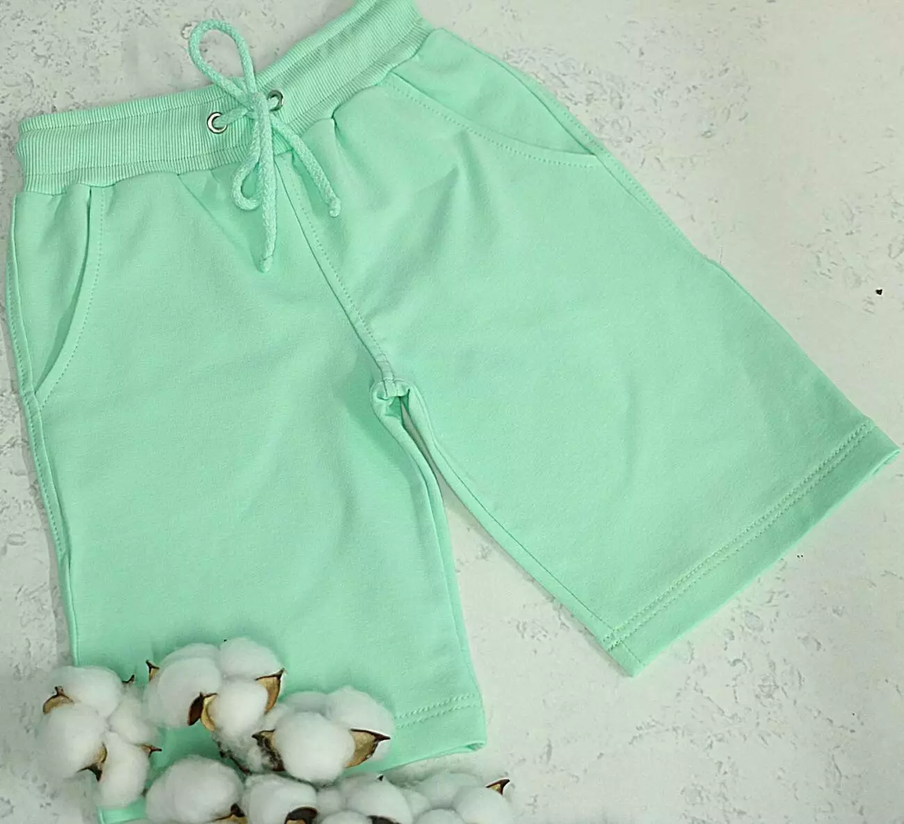 Дитячі та підліткові шорти виконані з трикотажної тканини двонитка 95%бавовни, 5% еластан. Вироби з такої тканини добре носятся, не линяють, не сідають, та не скашлатяться!! Дуже важливо, щоб виріб мав гарний вигляд і після 30 циклів прання!! Для виготовлення нашого одягу ми використовуємо якісну турецьку тканину преміум якості. Тому можна бути впевненим,що одяг прослужить довго!!